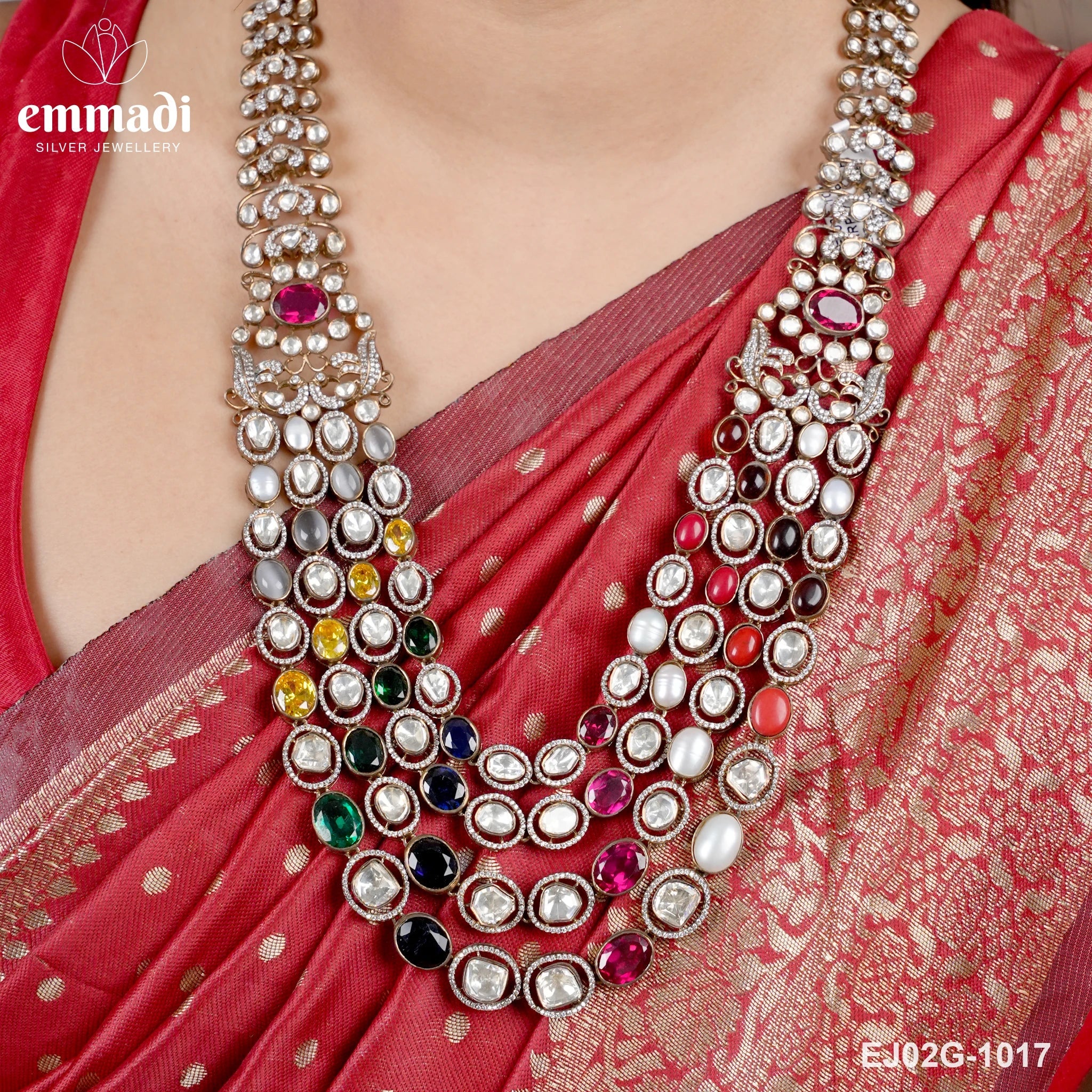 Indulge in the opulent elegance of the Banita Victorian Navrathan Long Necklace by Emmadi Silver Jeweller, India's Largest silver brand.