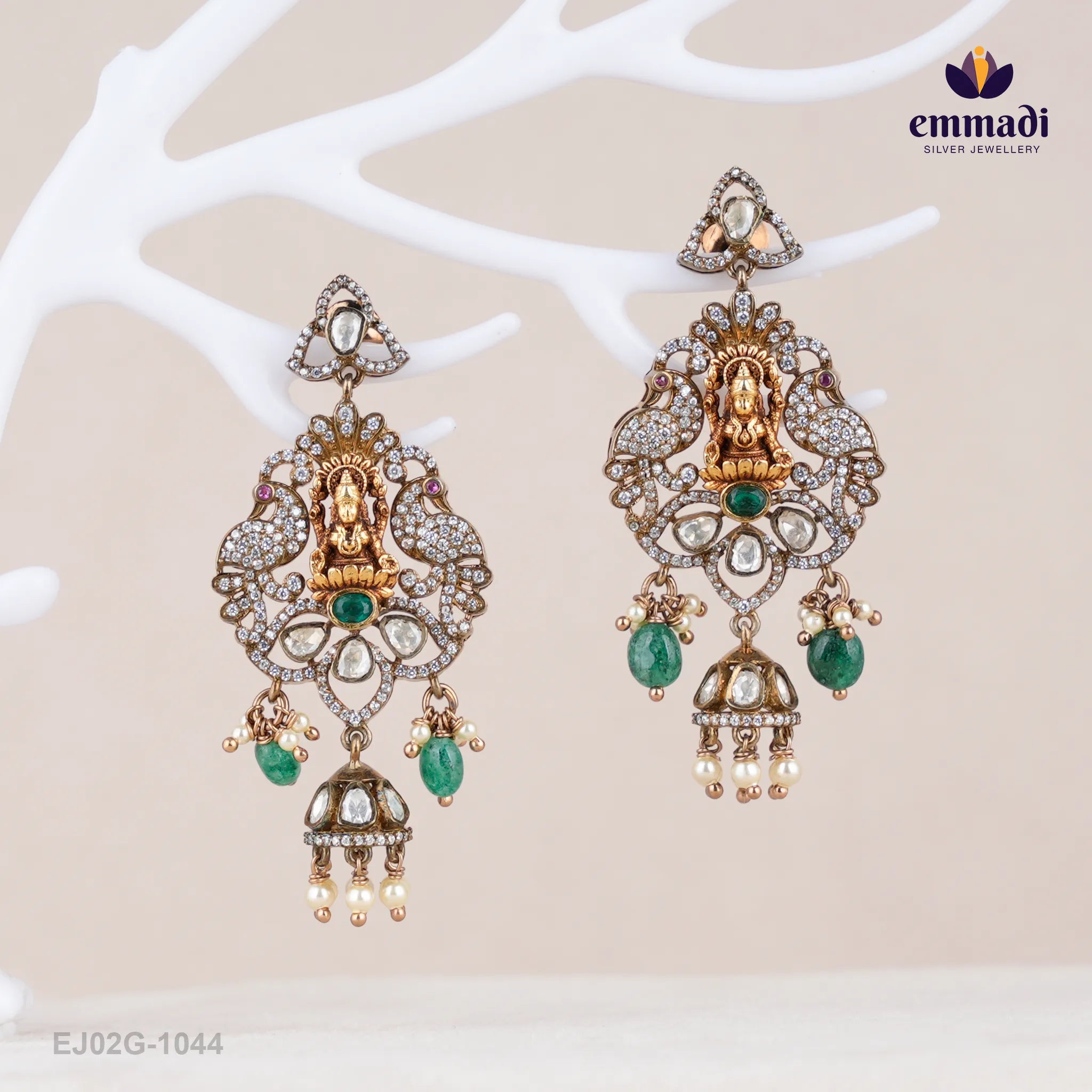 Indulge in the timeless elegance of Bhavya Victorian Multi Hangings, a true masterpiece from Emmadi Silver Jeweller, India's Largest silver brand. Elevate your ensemble with these exquisite earrings dripping with Victorian charm and sophistication. Let your style speak volumes with each delicate sway and shimmer as you exude luxury and opulence with every glance. Make a statement that's as majestic as it is captivating with these stunning hangings.