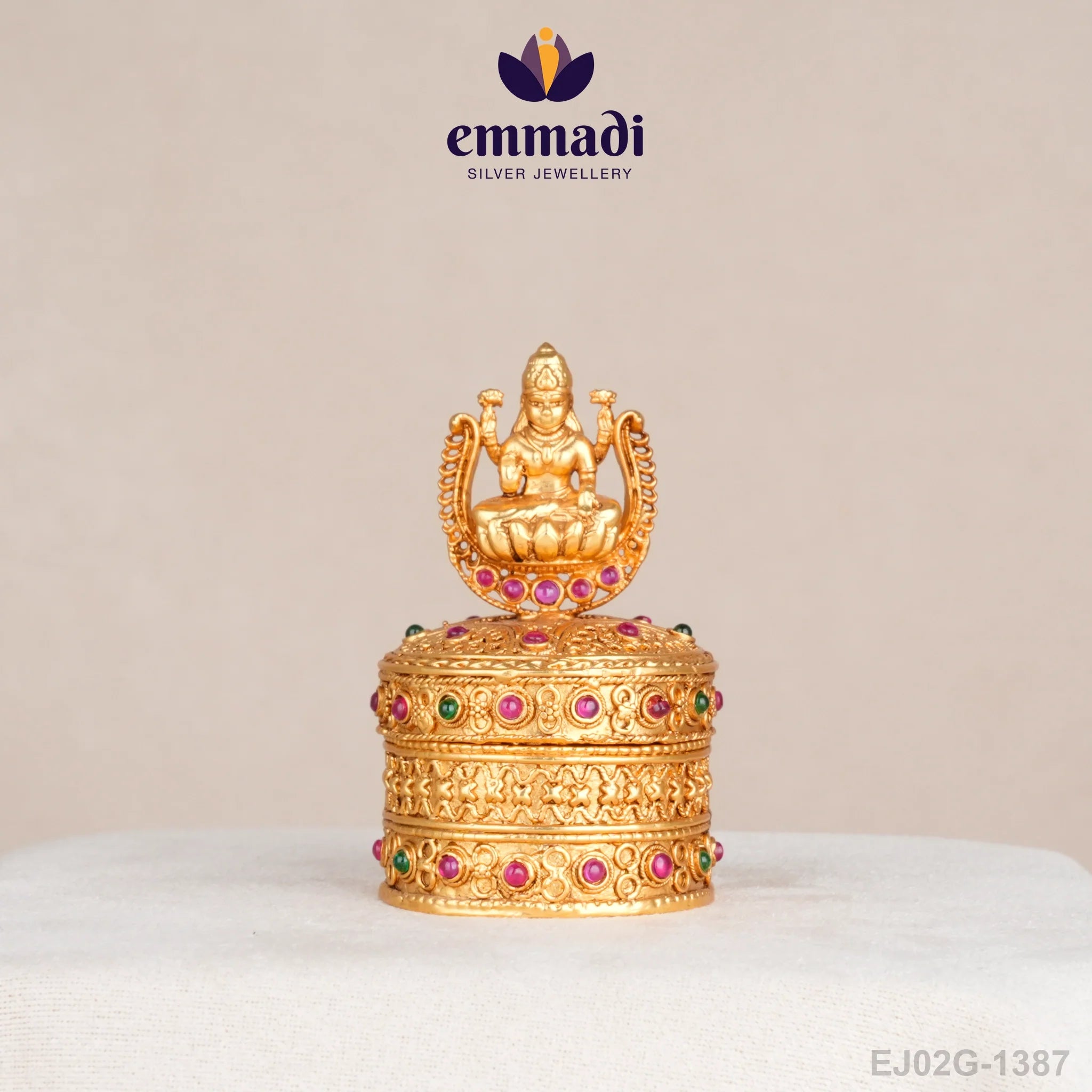 Indulge in timeless elegance with the Drisya Antique Multi Sindoor Dabbi by Emmadi Silver Jeweller. Crafted with exquisite detail, this stunning piece adds a touch of luxury to your daily routine. Elevate your sacred rituals with the India's Largest silver brand.