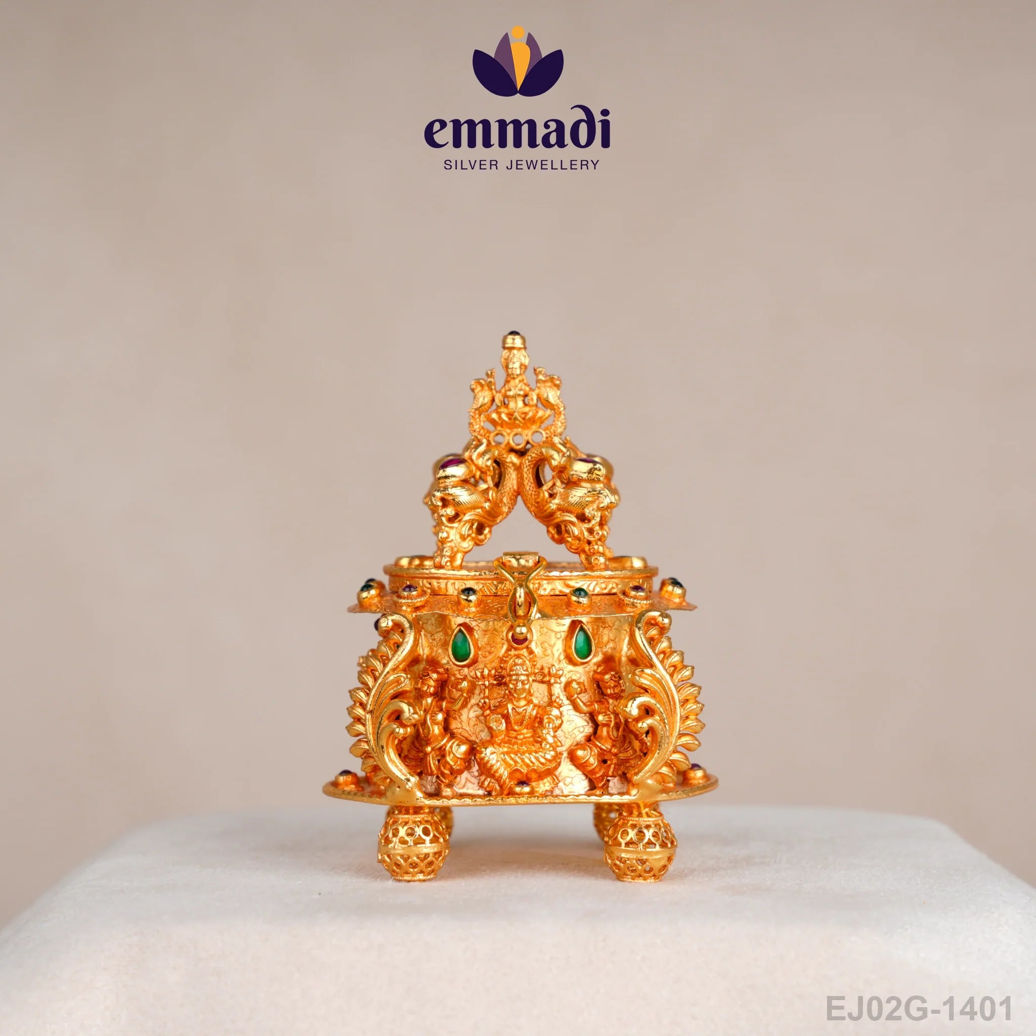Introducing the Eashta Antique Multi Sindoor Dabbi, a stunning creation from Emmadi Silver Jeweller, India's Largest silver brand. Elevate your traditional dressing with this exquisite piece, meticulously crafted to add a touch of opulence to your beauty routine. Every glance at the intricate design of this sindoor dabbi exudes timeless elegance and sophistication, making it a must-have accessory for the discerning connoisseur. Indulge in luxury and make a statement of grace with this magnificent creation.