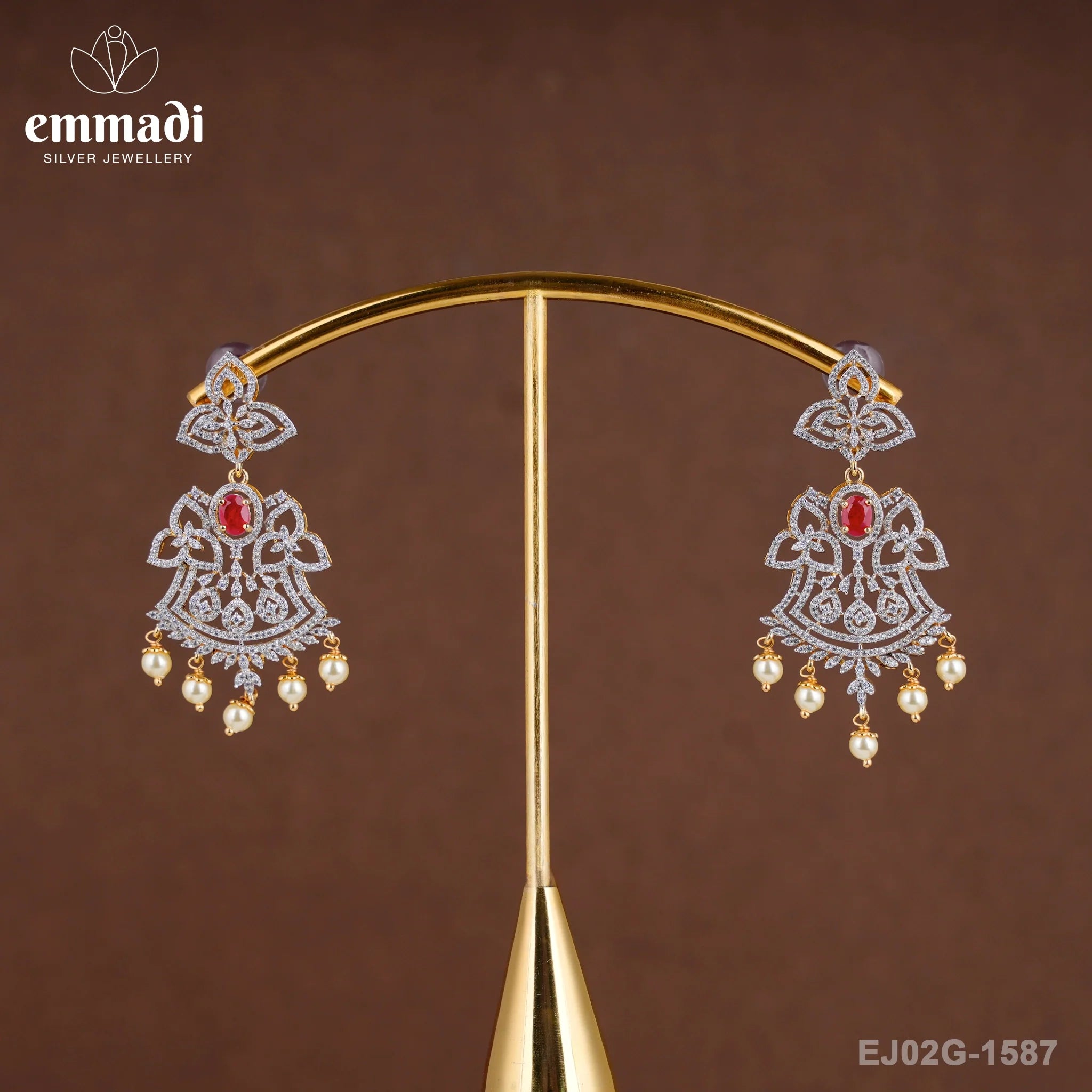 Indulge in the opulent beauty of Gitika Premium Cz Red Hangings by Emmadi Silver Jeweller, India's Largest silver brand. Enhance your glamour with these exquisite red CZ earrings, radiating elegance and sophistication. Elevate your style with a touch of luxury and make a statement that truly shines.