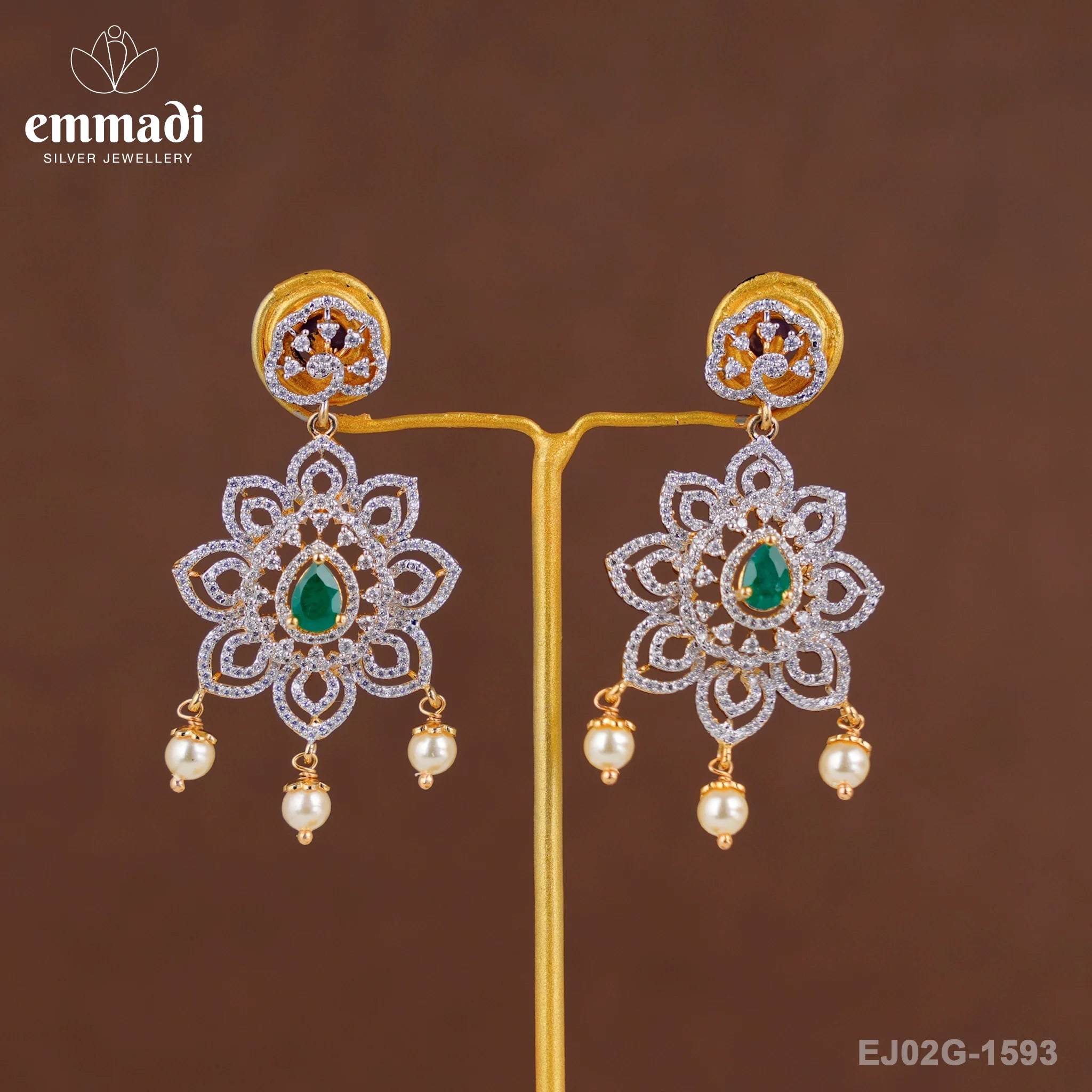 Indulge in the exquisite elegance of the Gu?ika Premium Cz Green Hangings by Emmadi Silver Jeweller. Adorn yourself with these captivating earrings, meticulously crafted to perfection. Elevate your style to new heights with the India's Largest silver brand. Experience the allure of luxury with every wear.