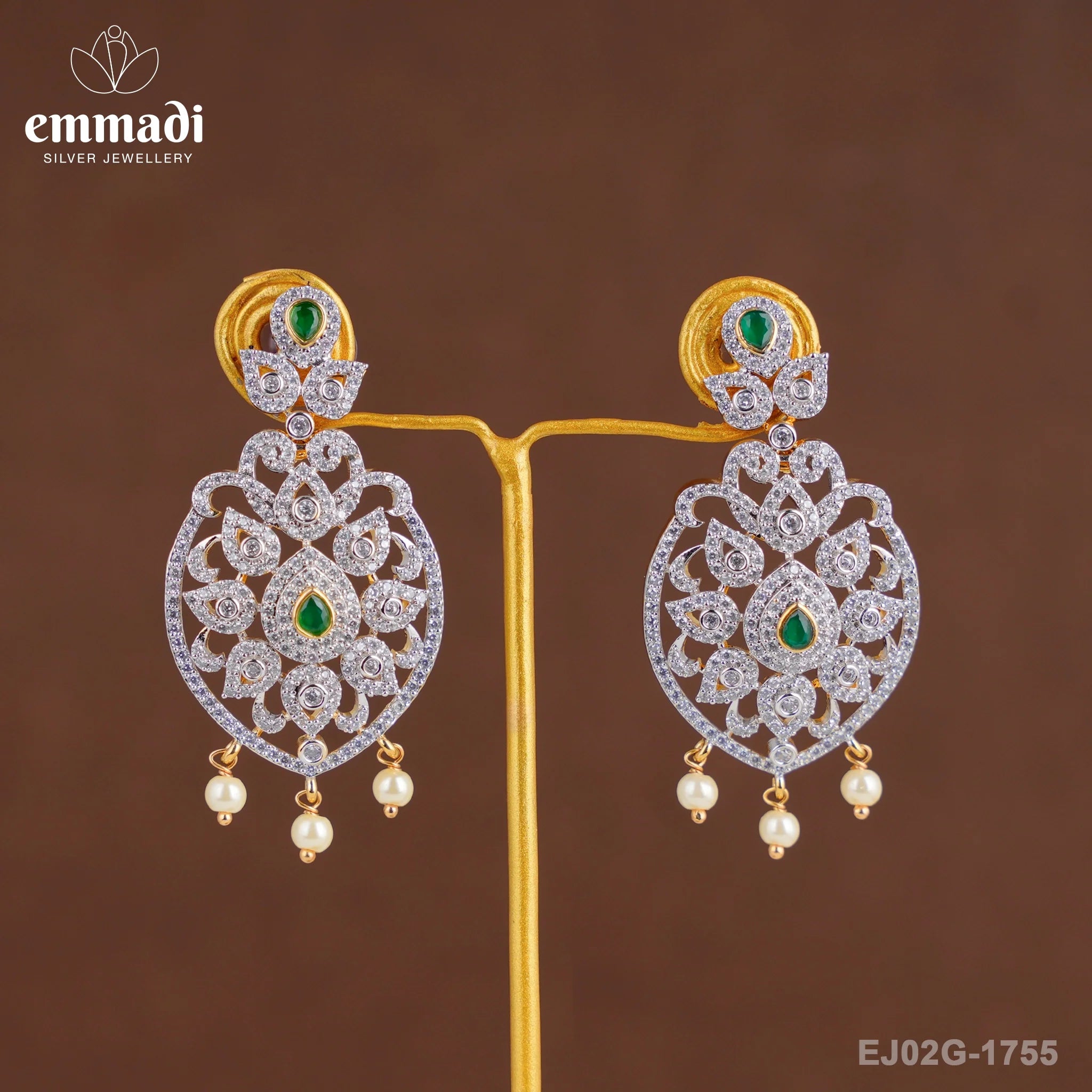 Indulge in luxury with the Ishika Premium Cz Green Hangings by Emmadi Silver Jeweller, India's Largest silver brand. Elevate your look with these exquisite earrings featuring stunning green CZ stones, exuding elegance and sophistication. Perfect for adding a touch of glamour to any outfit, these hangings are a must-have for those who appreciate the finer things in life. Make a statement and dazzle with Ishika Premium Cz Green Hangings.