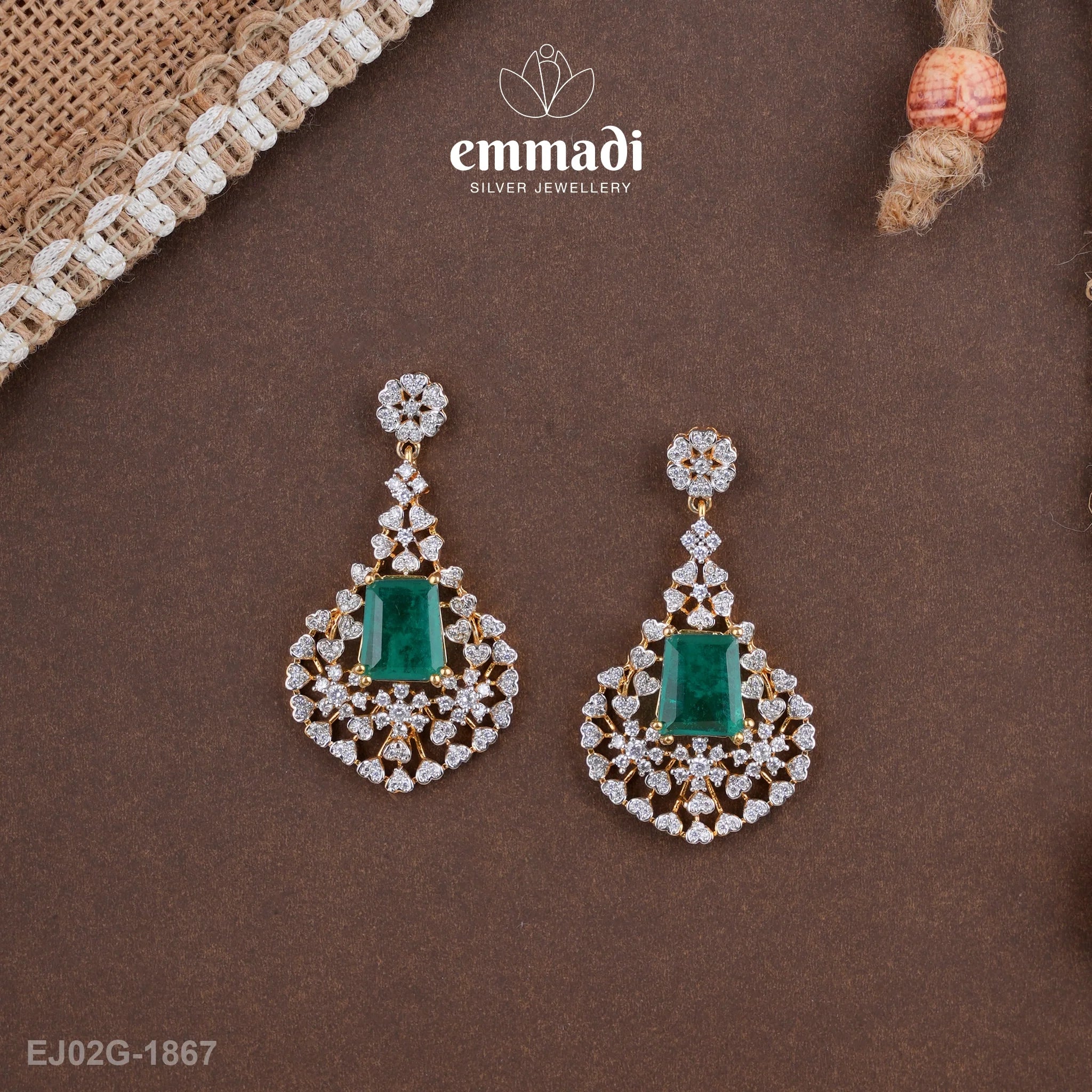Indulge in sheer opulence with the Kacima Premium CZ Green Hangings from Emmadi Silver Jeweller, India's Largest silver brand. Elevate your style with these exquisite earrings featuring stunning green CZ stones that radiate elegance and sophistication. Add a touch of luxury to your look and let your unique sense of glamour shine through with these captivating hangings. Truly a statement piece for the modern woman of discerning taste.