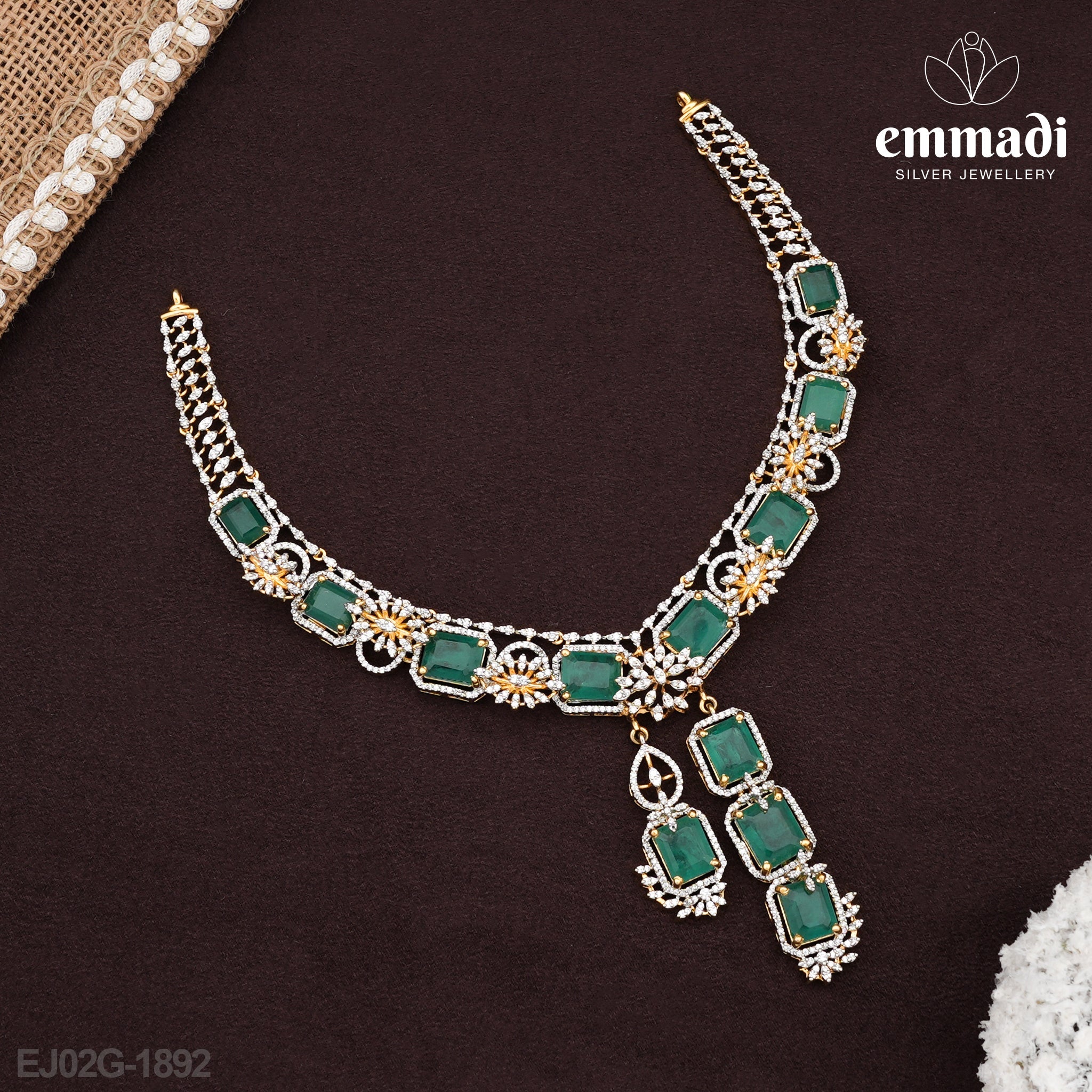 Introducing Anju's Enchanting Green CZ Necklace, a stunning piece that exemplifies elegance and sophistication. Crafted meticulously with premium cubic zirconia (CZ) stones, this necklace is designed to captivate and enhance any outfit, making it the perfect accessory for both casual and formal occasions.