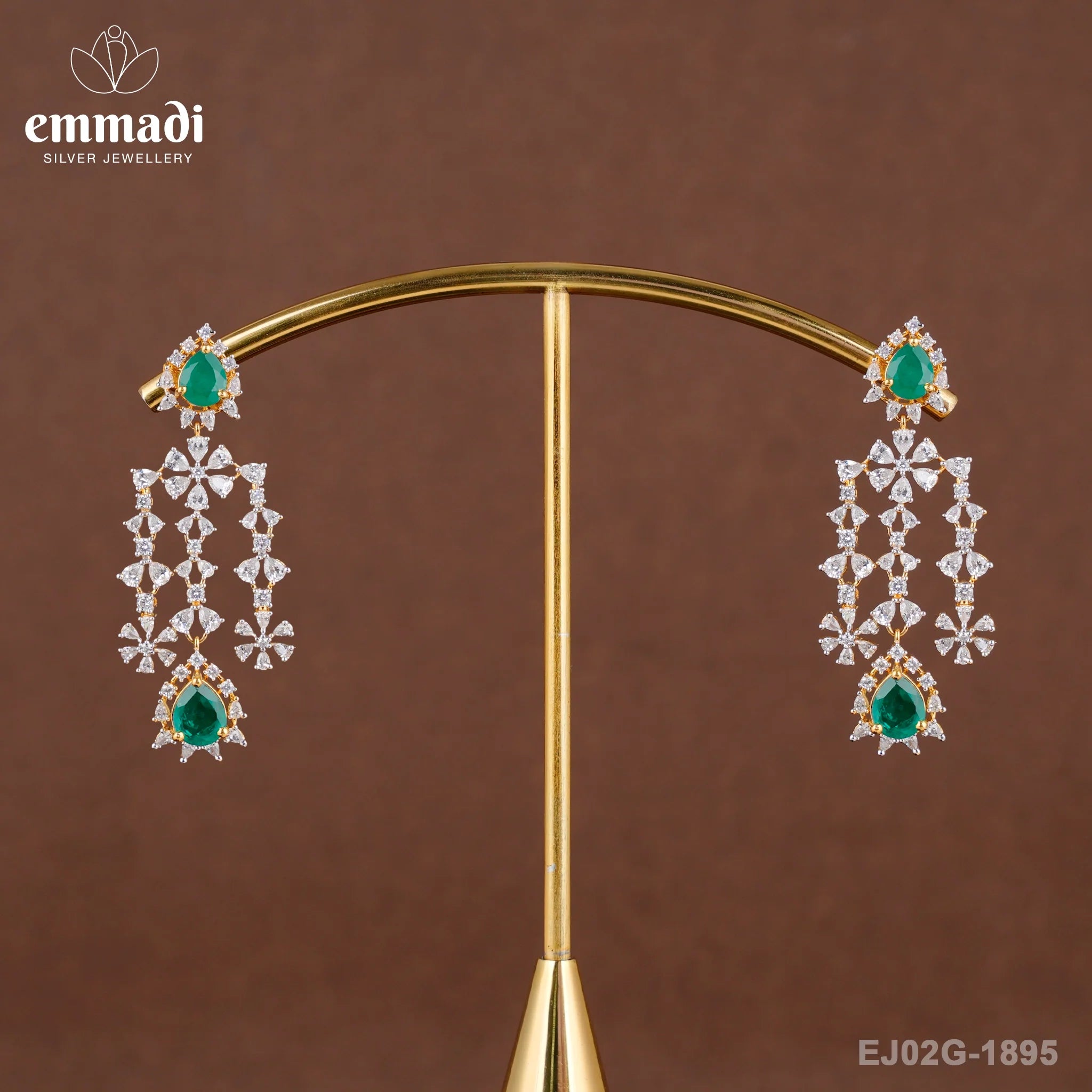 Indulge in the exquisite elegance of Kanika Premium Cz Green Hangings by Emmadi Silver Jeweller, India's Largest silver brand. Sparkling with a captivating allure, these stunning earrings are a true statement of luxury and sophistication. Elevate your look with the brilliance of premium CZ stones and the enchanting shade of green, designed to add a touch of glamour to any ensemble. Adorn yourself with the finest craftsmanship and impeccable style.