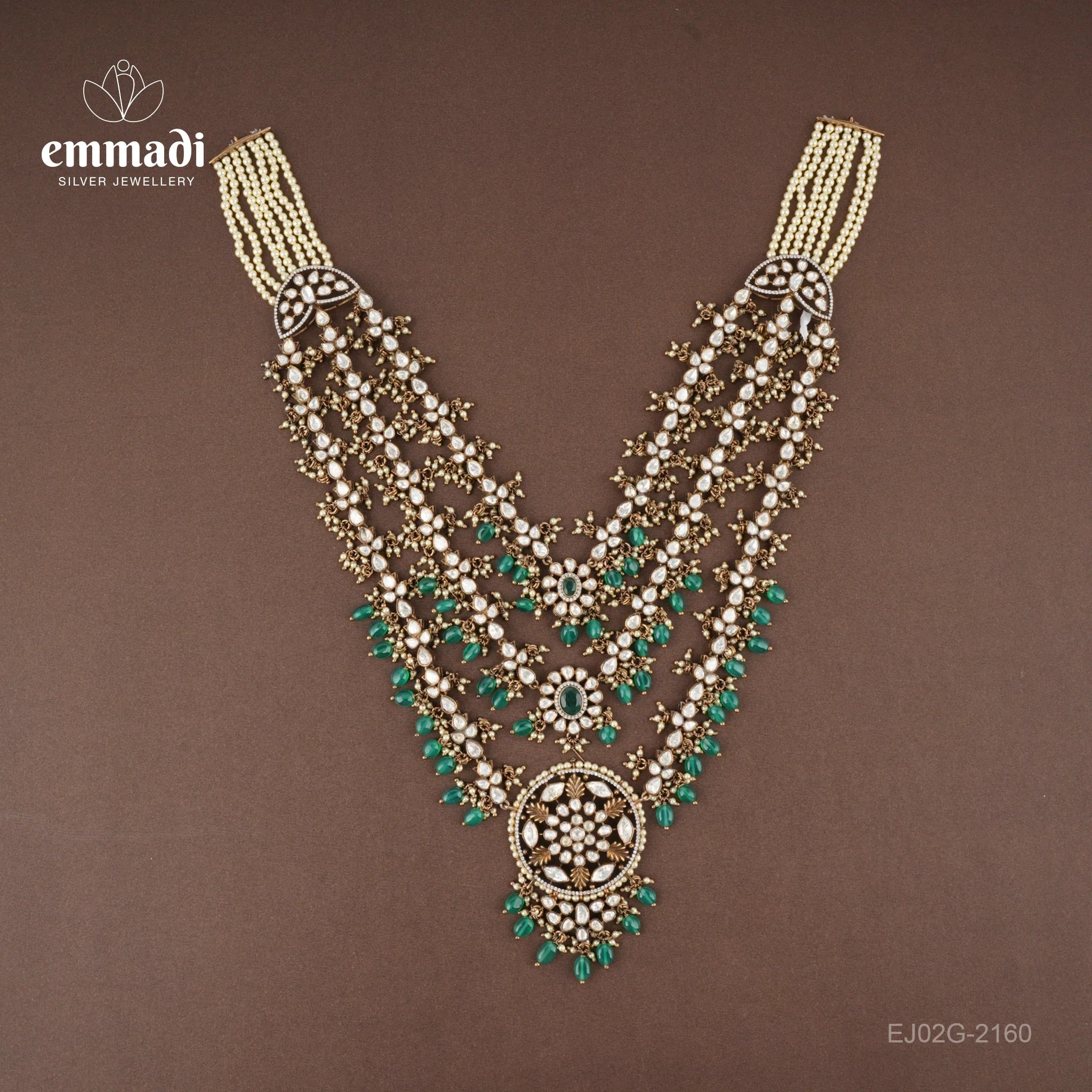 Indulge in the exquisite allure of the Kara?a Victorian Green Long Necklace, a masterpiece crafted by Emmadi Silver Jeweller, India's Largest silver brand. ���� Adorn yourself with elegance and sophistication as the intricate design of this necklace transports you to a world of luxury and style. Elevate your ensemble with this timeless piece that exudes opulence and charm, making a statement wherever you go. Allow the Victorian Green Long Necklace to be the crowning jewel of your collection, embodying the essence of beauty and grace.