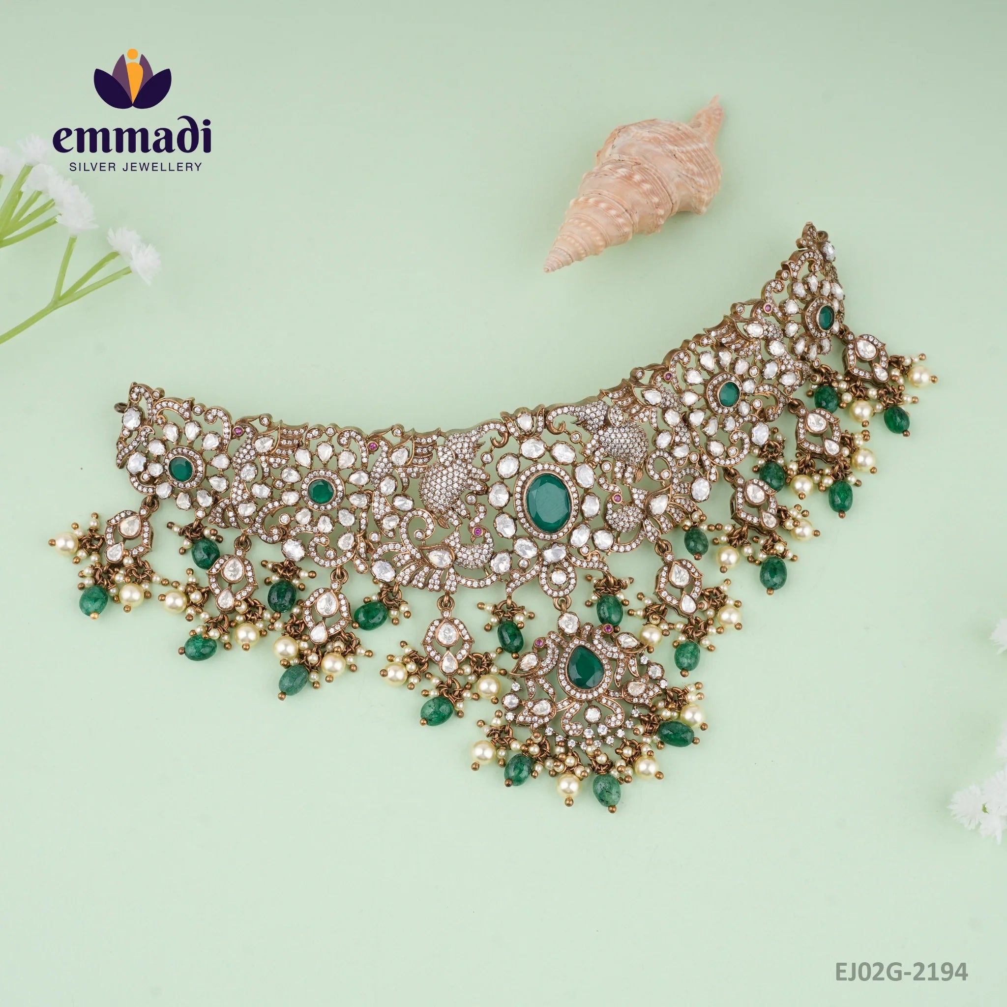 Indulge in the opulent charm of the Emmadi Silver Jeweller with the Ketika Victorian Multi Choker. Elevate your style with this stunning piece that exudes elegance and sophistication. Make a statement at any event with this luxurious choker that beautifully embodies timeless grace. Experience the epitome of silver craftsmanship with India's Largest silver brand.