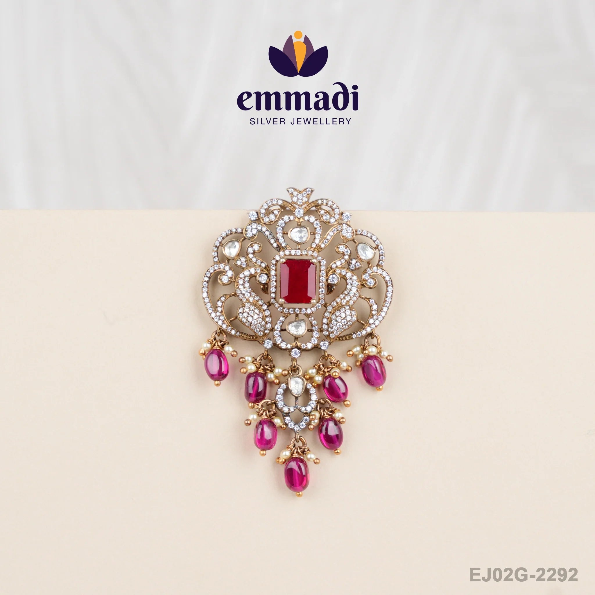 Indulge in the exquisite beauty of the Kuvala Victorian Red Jada Pin, crafted by the renowned Emmadi Silver Jeweller, India's Largest silver brand. Elevate your ensemble with this stunning piece that exudes opulence and sophistication. Adorned with intricate details and a striking red jada design, this pin is a must-have for those who appreciate the finer things in life. Embrace luxury with the Kuvala Victorian Red Jada Pin and make a statement wherever you go.
