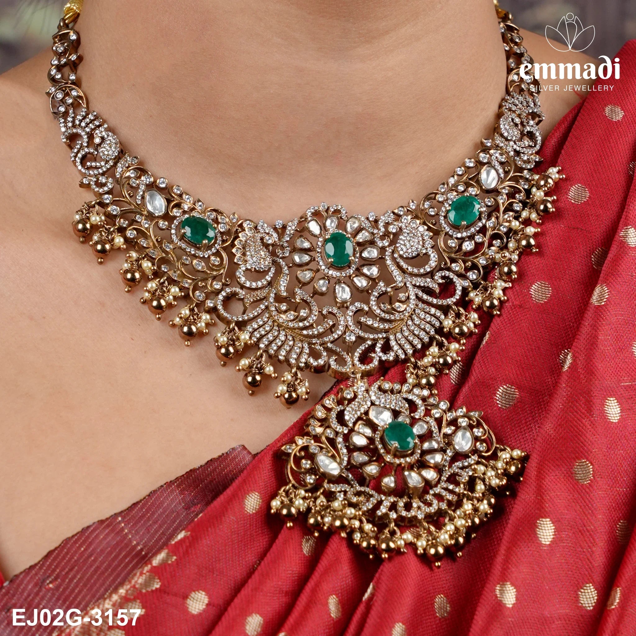 Indulge in opulence with the Salaka Victorian Green Necklace by Emmadi Silver Jeweller, India's Largest silver brand. Elevate your style with this exquisite piece that exudes luxury and elegance. Adorn yourself with the intricate details and vibrant green hue of this stunning Victorian necklace. Embrace sophistication and grace with every wear, making a statement that is truly timeless.