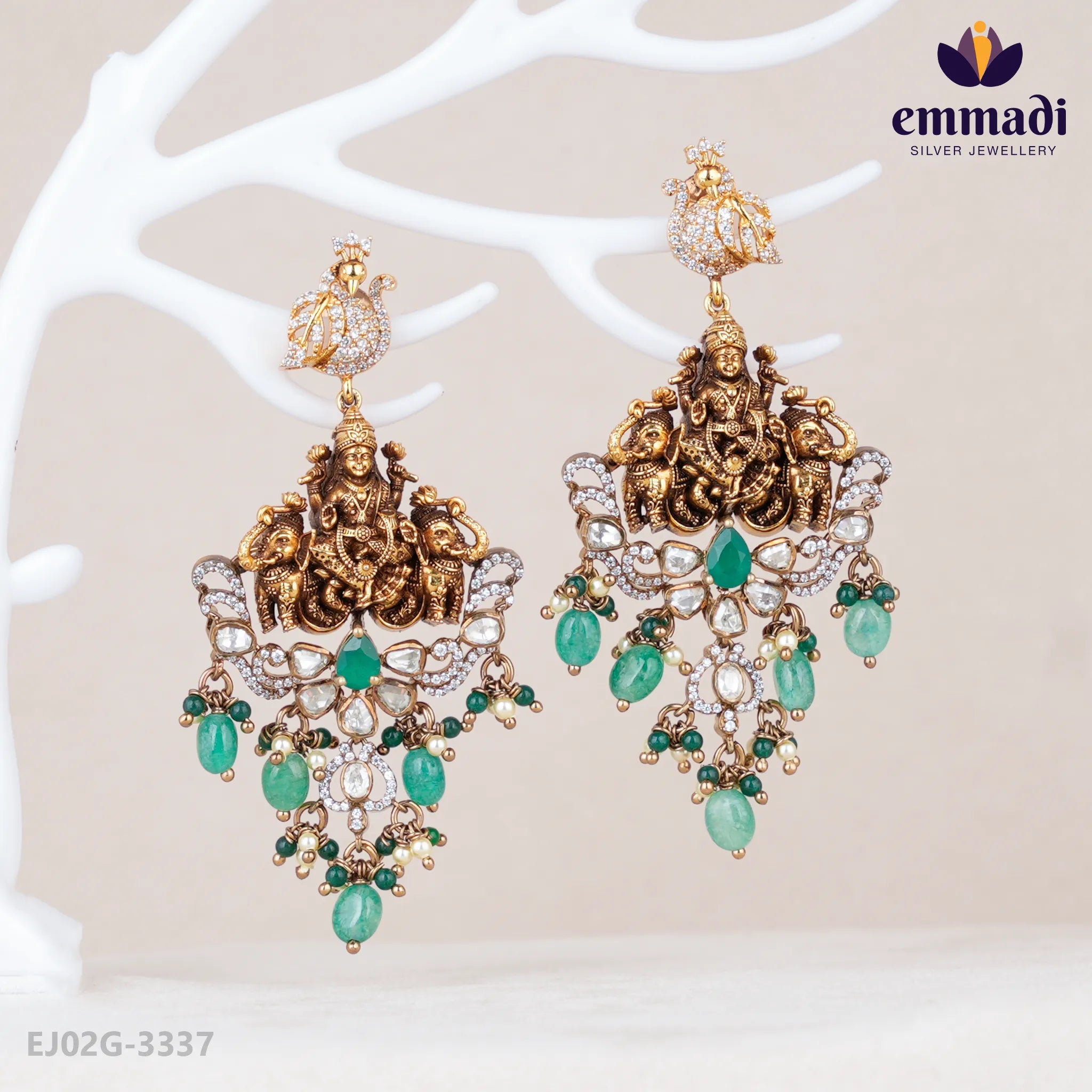 Step into the elegance of a bygone era with the Shrina Victorian Green Hangings by Emmadi Silver Jeweller, India's Largest silver brand. Adorn yourself with these exquisite green hangings, designed to exude luxury and sophistication. Elevate any outfit with the timeless charm of Victorian-inspired jewellery. Let your style make a statement with these captivating pieces that effortlessly blend tradition with modern glamour.