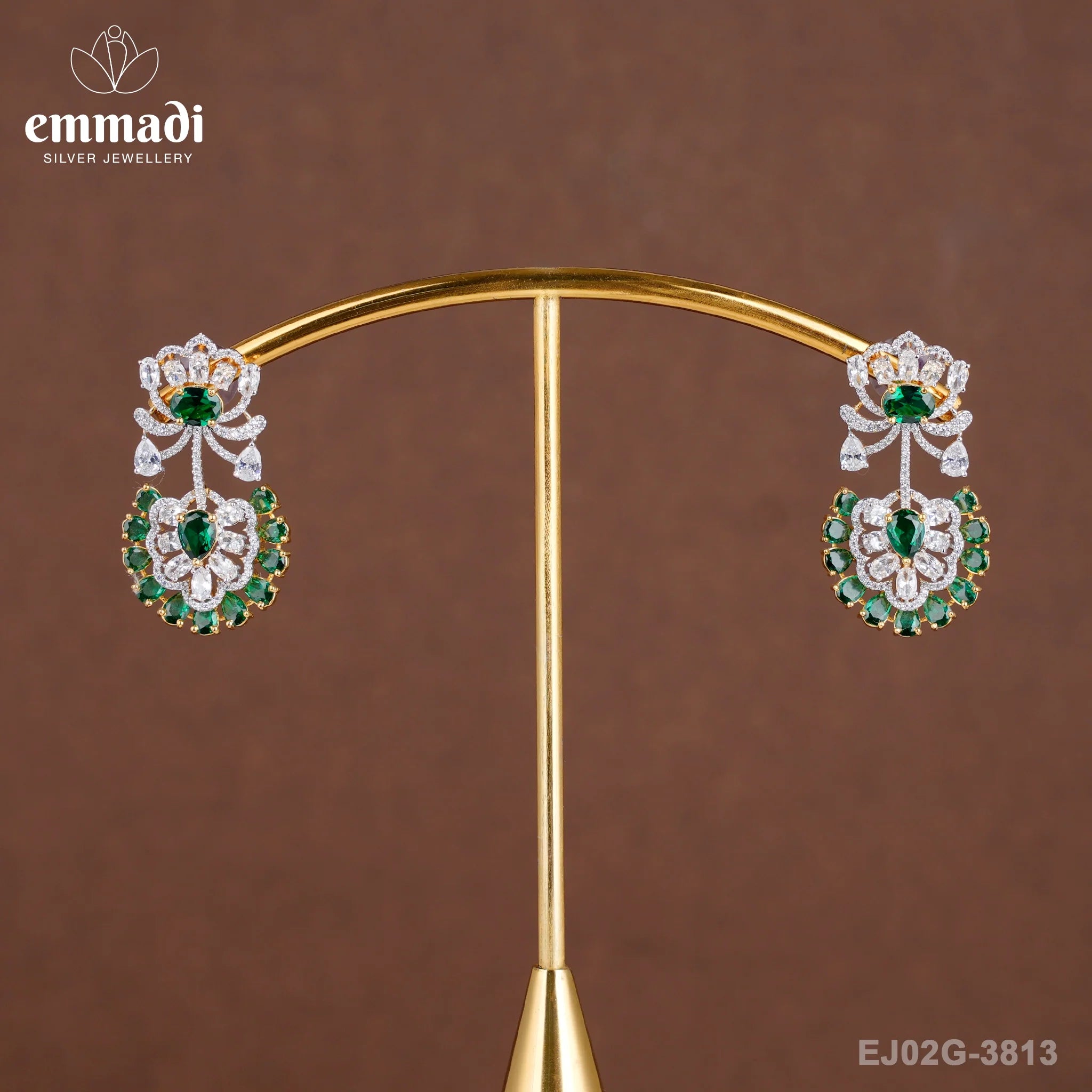 Indulge in the exquisite beauty of Urjika Premium Cz Green Hangings by Emmadi Silver Jeweller, India's Largest Silver Brand. These stunning earrings exude elegance and sophistication, making them the perfect accessory for any special occasion. Adorned with dazzling green cubic zirconia, these hangings will elevate your look to new heights of luxury. Embrace opulence with Urjika Premium Cz Green Hangings.
