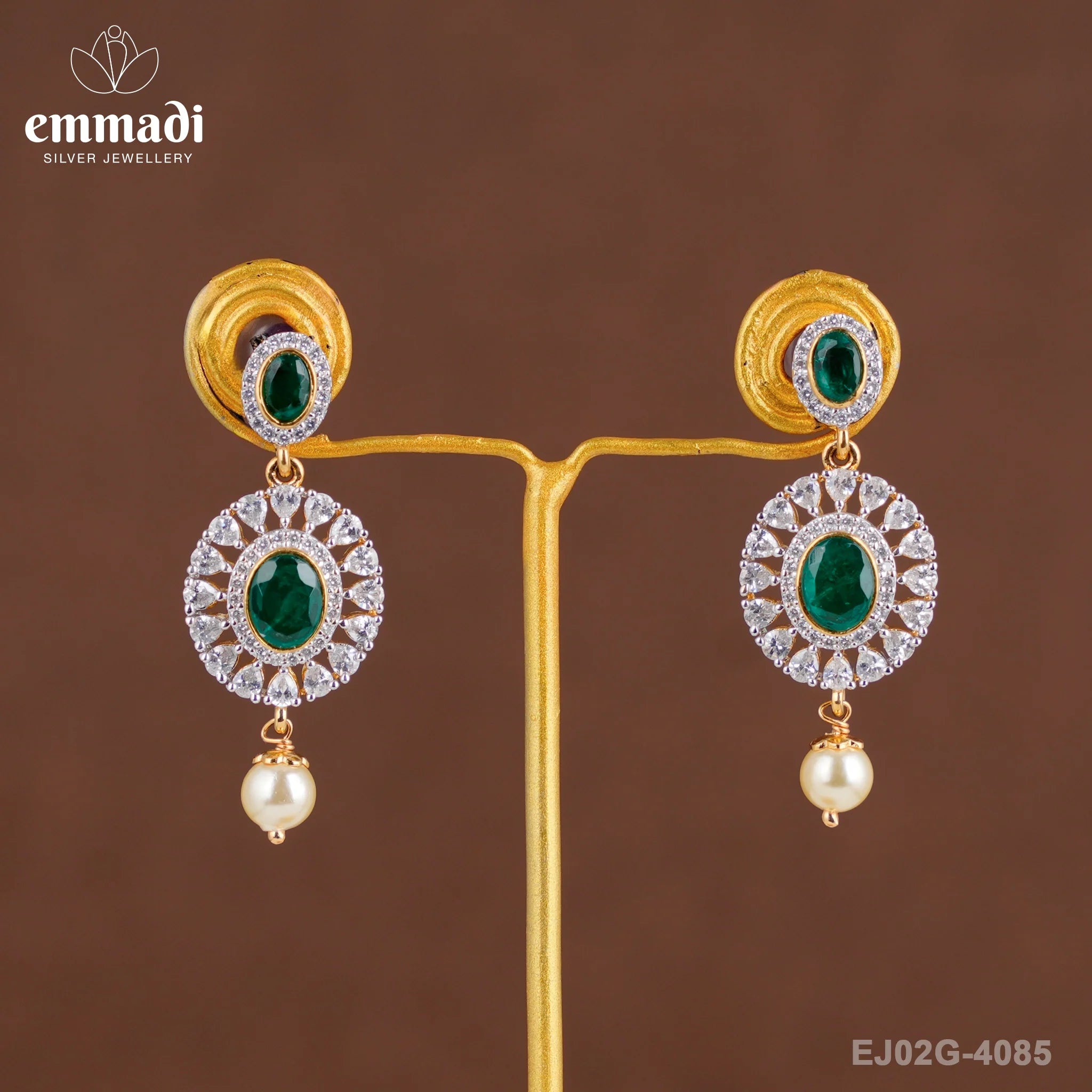 Indulge in the elegance of Aadrita Premium Cz Green Hangings, brought to you by Emmadi Silver Jeweller, India's Largest silver brand. Enhance your attire with these exquisite green hangings, exuding a sense of luxury and sophistication. Elevate your style effortlessly.