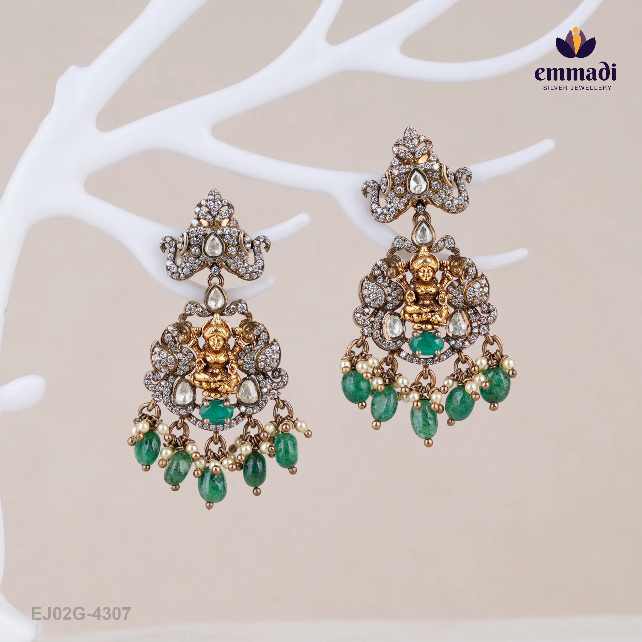 Introducing the exquisite Araaina Victorian Green Hangings - a true masterpiece in jewellery craftsmanship. Elevate your style with these luxurious green hangings, meticulously designed to capture attention and exude elegance. Handcrafted with precision and attention to detail, each piece is a symbol of opulence and sophistication. From day to night, these Araaina Victorian Hangings effortlessly enhance your look, leaving a lasting impression of glamour and refinement. As the pinnacle of luxury, step into the world of Emmadi Silver Jeweller, India's Largest silver brand, and experience the beauty of true craftsmanship.