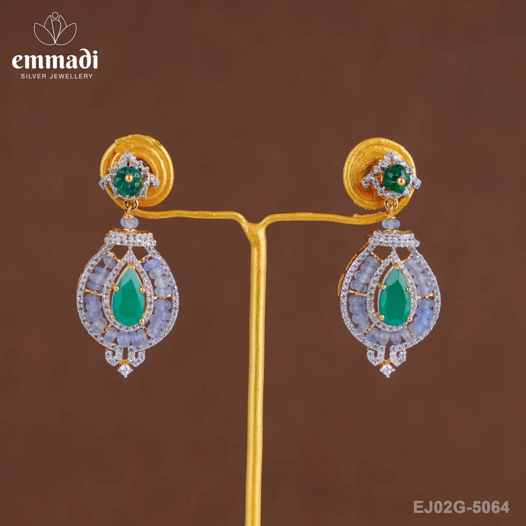 Indulge in opulent elegance with the Bhavana Premium Cz Green Hangings by Emmadi Silver Jeweller, India's largest silver brand. With their enchanting green CZ stones and intricate design, these hangings exude unmatched luxury and sophistication. Elevate your style effortlessly with these exquisite pieces that are sure to make a statement at any event or occasion. Immerse yourself in the world of impeccable craftsmanship and timeless beauty with these remarkable hangings.