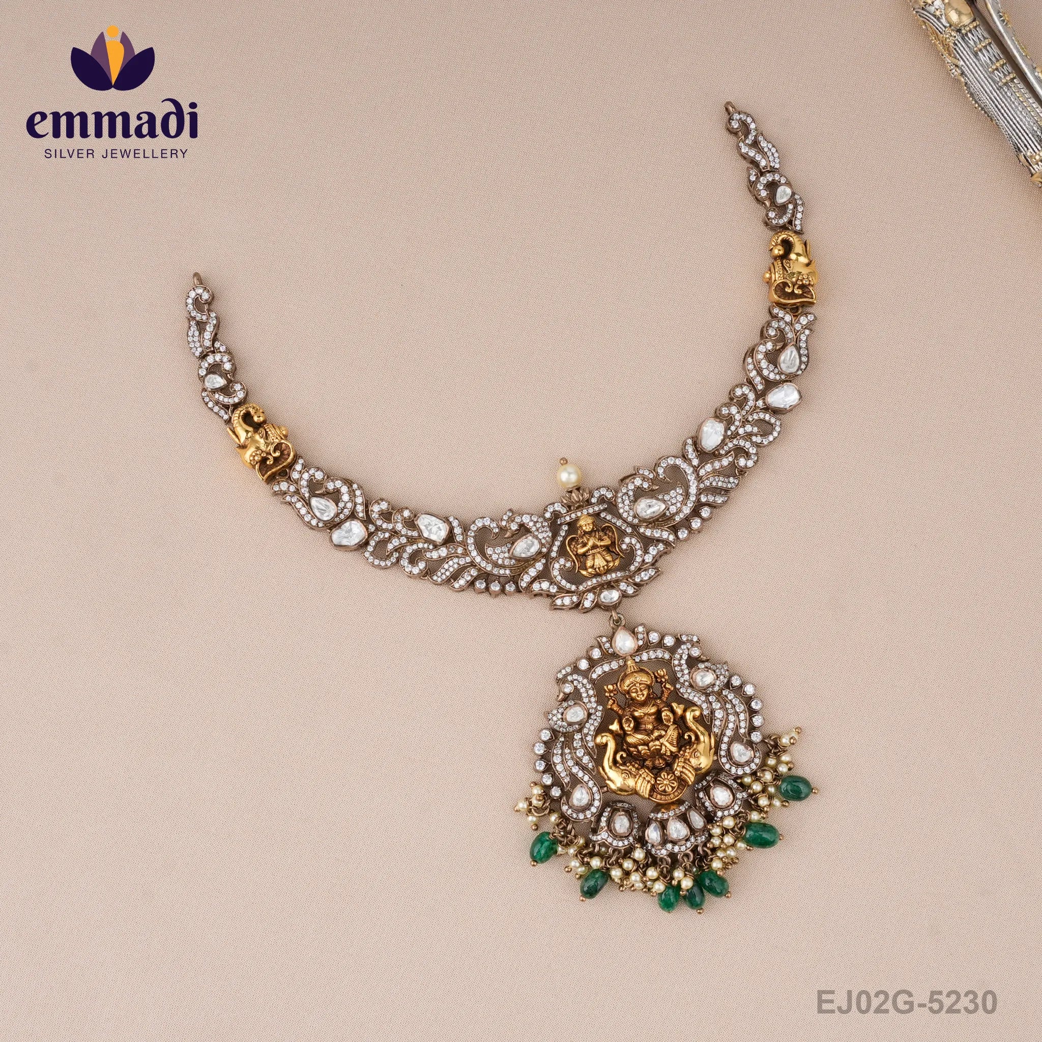 Indulge in the exquisite charm of the Bi?haka Victorian White Necklace, a true masterpiece from Emmadi Silver Jeweller, India's Largest silver brand. This opulent necklace exudes regal elegance and a timeless allure that will elevate any ensemble to new heights of sophistication. Immerse yourself in luxury and grace with the stunning Bi?haka Victorian White Necklace.