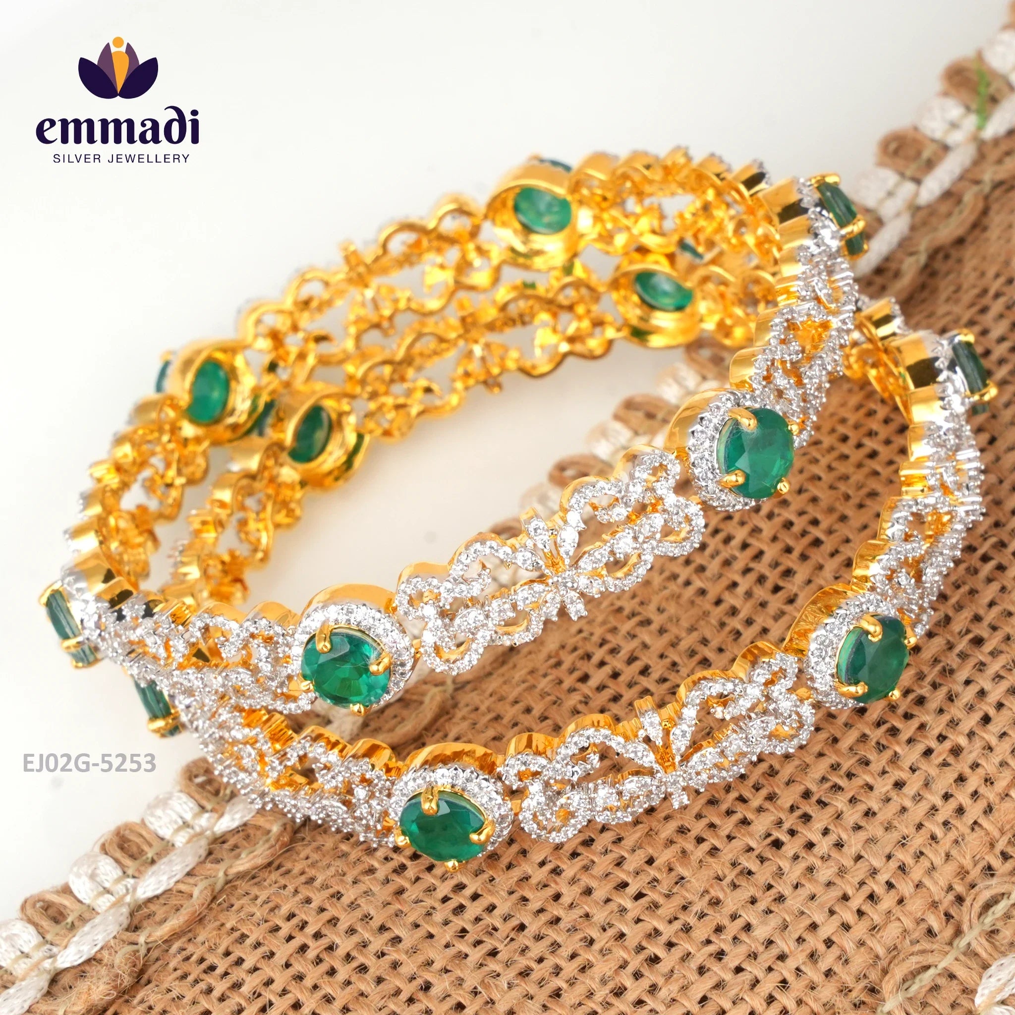 Indulge in the epitome of luxury with Campesa Premium CZ Green Bangles. Crafted with precision and adorned with captivating green CZ stones, these bangles are a true masterpiece of elegance and opulence. Elevate your look with sophistication and charm as you immerse yourself in the exquisite craftsmanship by Emmadi Silver Jeweller, India's Largest Silver Brand. Experience the allure of timeless beauty and prestige. Elevate your ensemble with Campesa - where glamour meets sophistication.