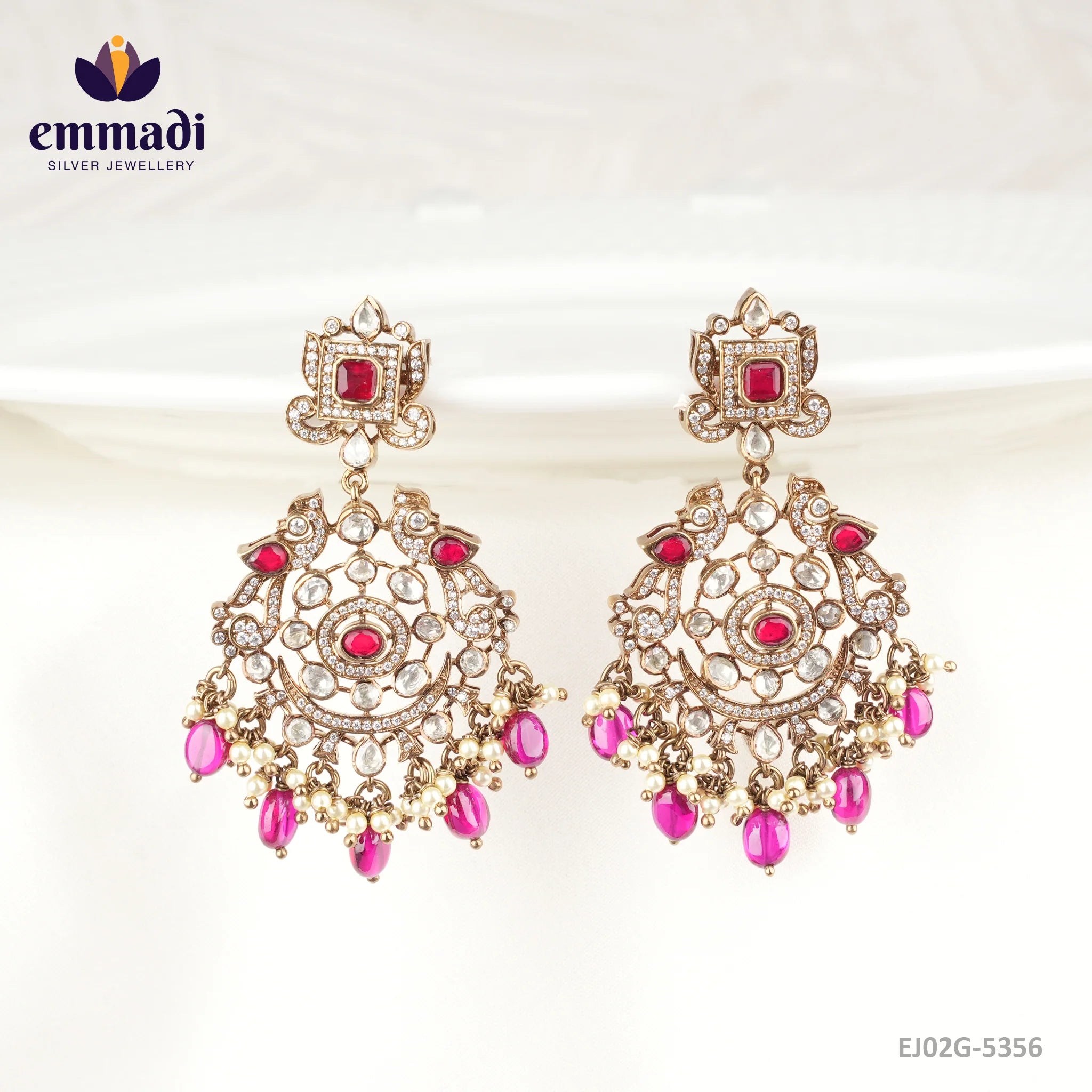 Indulge in exquisite elegance with Chithra Victorian Pink Hangings by Emmadi Silver Jeweller, India's Largest silver brand. Embrace a touch of opulence with these timeless pieces that capture the essence of Victorian charm ���� Elevate your style and make a statement with these beautifully crafted hangings that exude sophistication and grace. Perfect for adding a touch of luxury to any outfit, these pink hangings are a must-have for those who appreciate the finer things in life. Make a bold and elegant statement with Chithra Victorian Pink Hangings today.