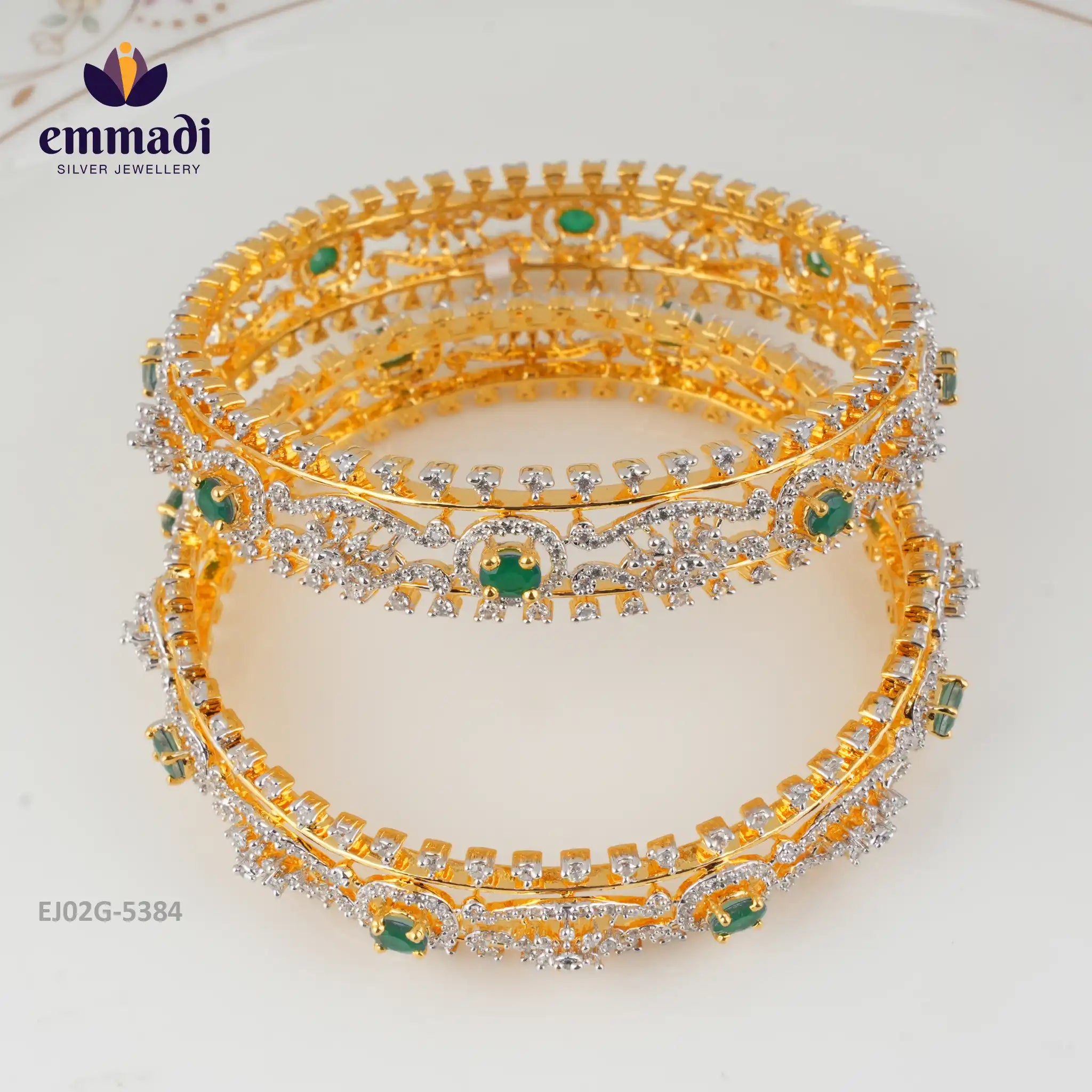 Elevate your style to new heights with the opulent allure of Deevena Premium Cz Green Bangles by Emmadi Silver Jewellery, India's Largest Silver Brand. Adorned with brilliant green Cz stones set in timeless silver, these exquisite bangles exude sophistication and glamour. Make a lasting impression wherever you go as you effortlessly command attention and embrace the luxury of refined elegance.