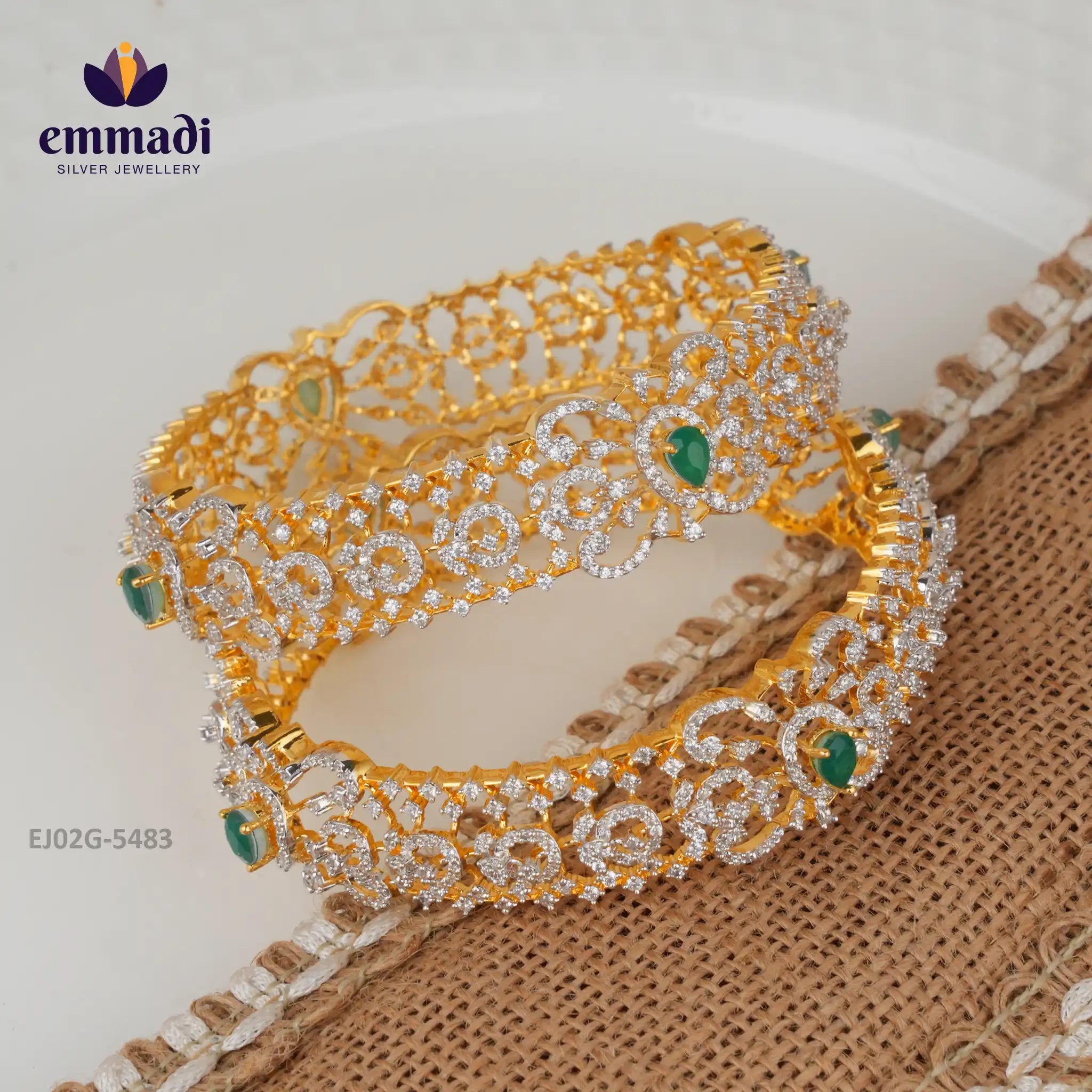 Step into a realm of unbridled luxury with the Diksaka Premium Cz Green Bangles by Emmadi Silver Jewellery, India's Largest silver brand. Let the exquisite craftsmanship and opulent design of these bangles transport you to a world where sophistication reigns supreme. Adorn your wrist with the captivating emerald-green CZ stones that radiate elegance with every movement. Elevate your style to unparalleled heights and make a statement that echoes prestige and finesse. Experience the pinnacle of sophistication with the iconic Diksaka Premium Cz Green Bangles.