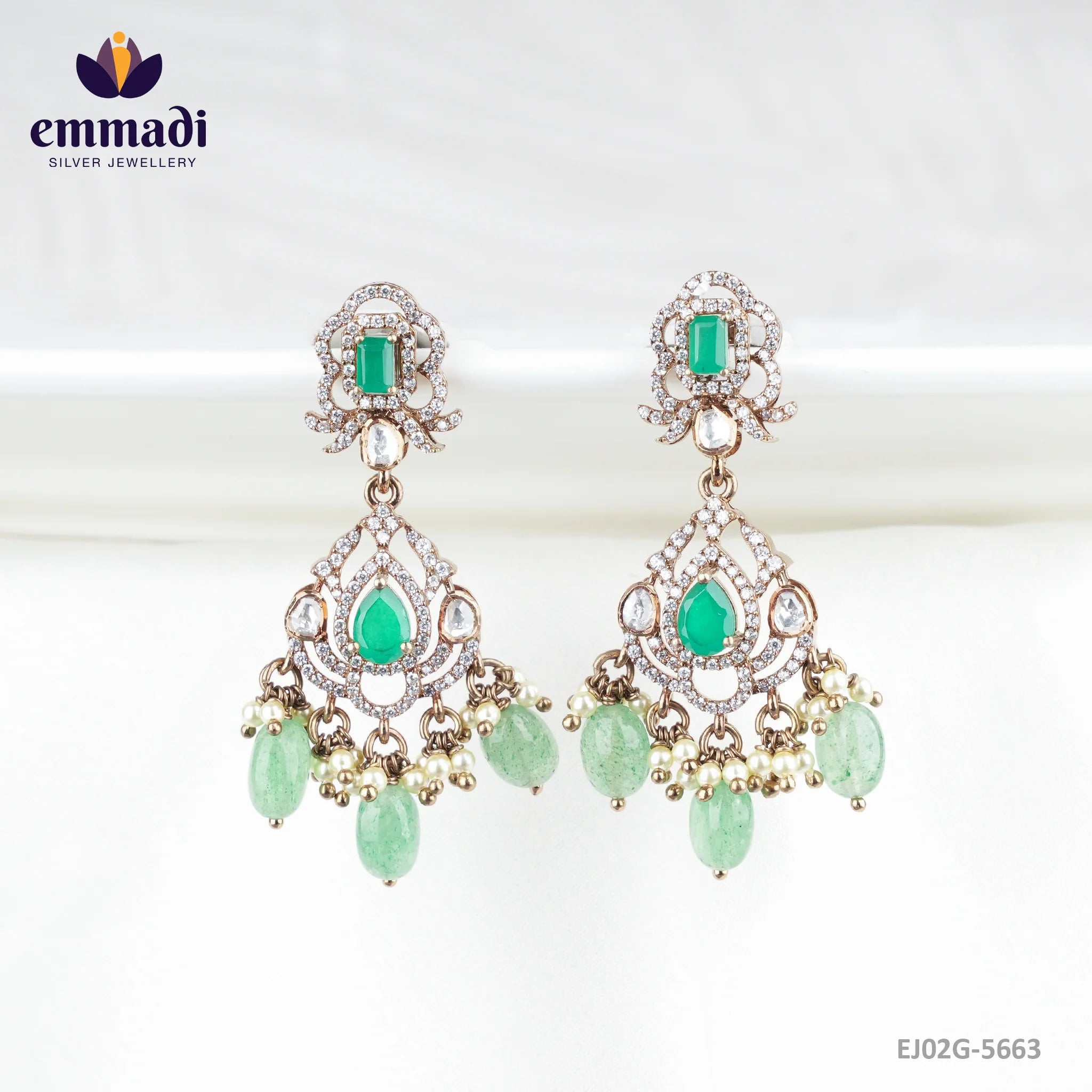 Indulge in the timeless elegance of Dyotana Victorian Green Hangings, crafted to perfection by Emmadi Silver Jeweller, India's Largest silver brand. Elevate your ensemble with these exquisite green hangings, exuding sophistication and charm. Let the Victorian design and luxurious green hue make a statement of opulence and refinement. Adorn yourself with these graceful earrings and embrace a touch of regal beauty in every outfit.