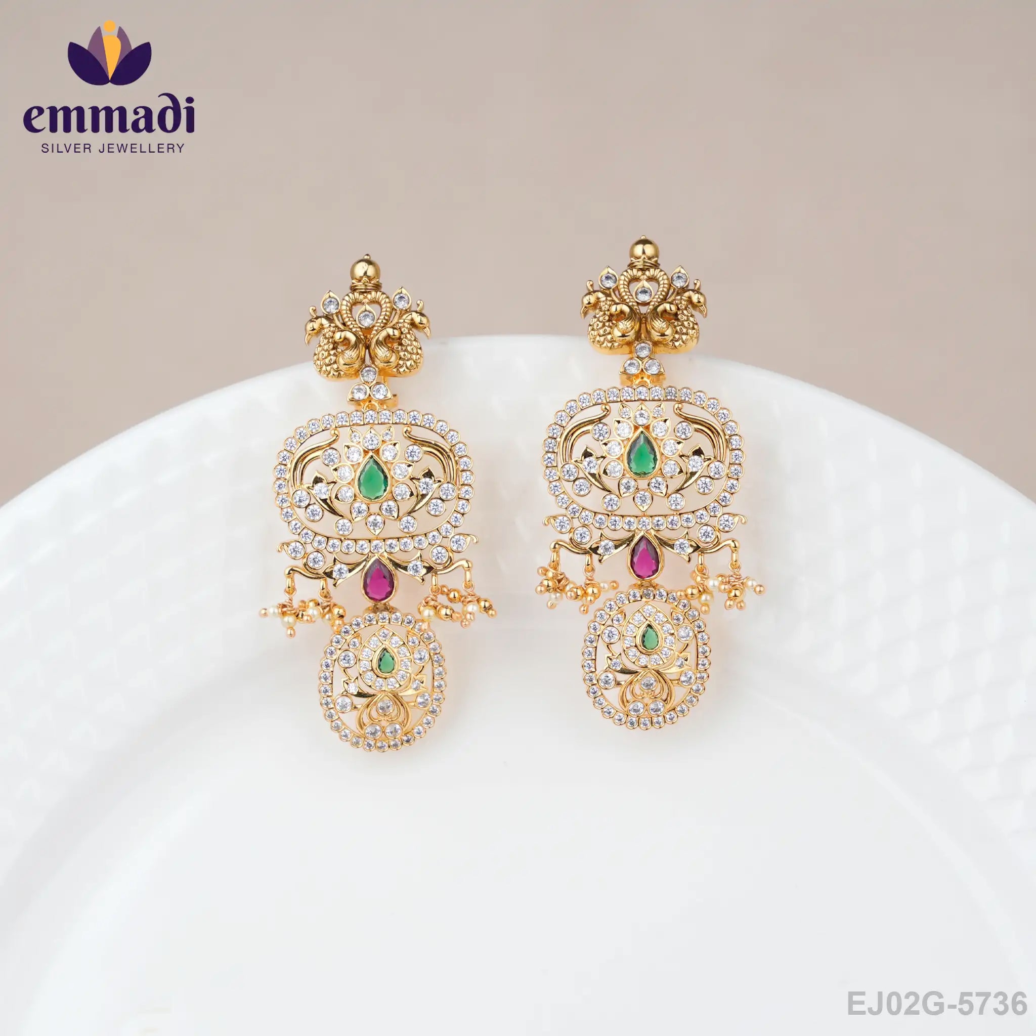 Step into elegance with the Grhitha Premium Antique Green Hangings from Emmadi Silver Jeweller. These exquisite earrings exude a classic charm that is truly unparalleled. Crafted with precision and finesse, the intricate design of these hangings embodies luxury at its finest. Elevate your style effortlessly with the timeless beauty of these antique green hangings. Indulge in the allure of Emmadi Silver Jeweller, India's Largest silver brand.