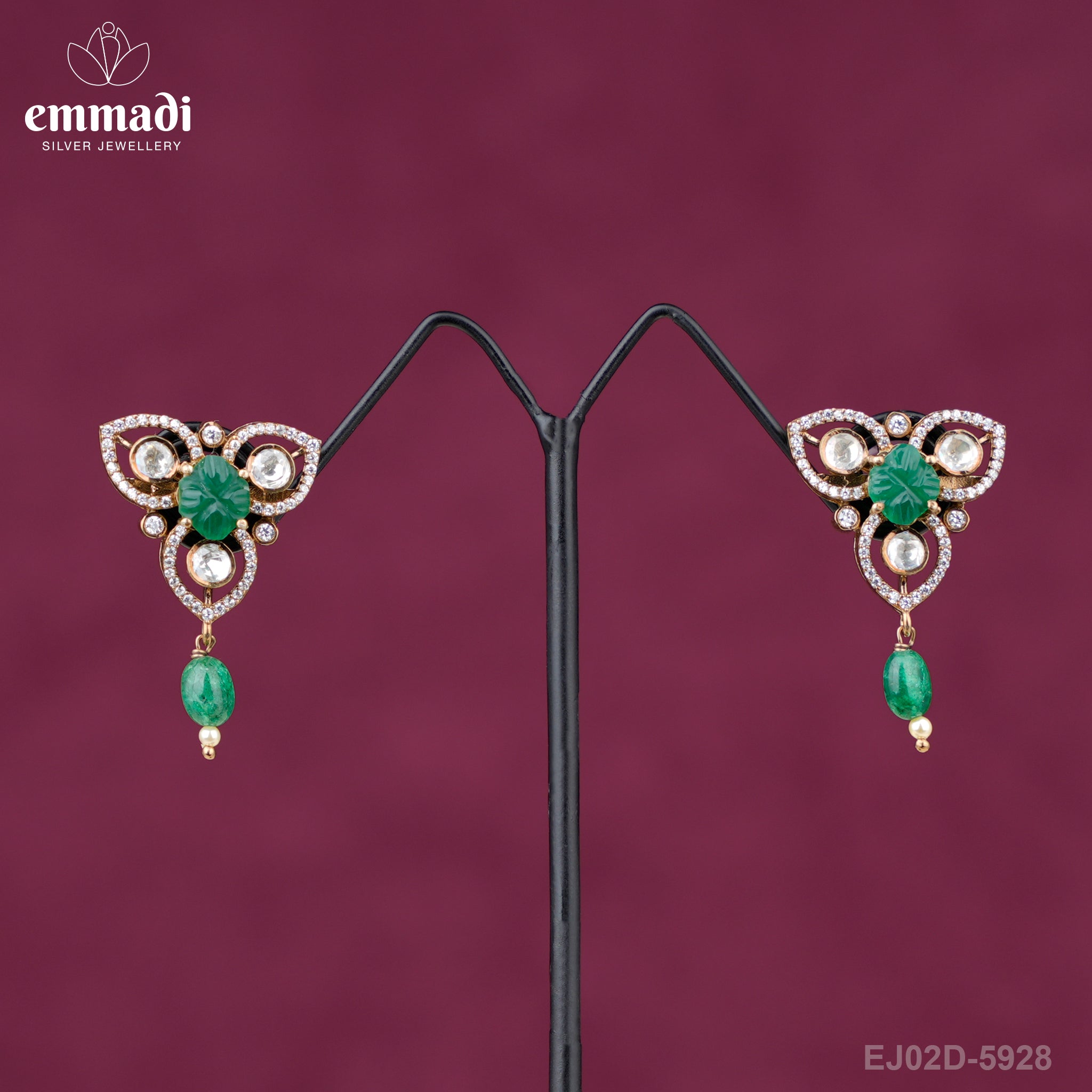 Our Victorian Green Studs are adorned with stunning green stones that capture the essence of royalty and luxury. Each stone is meticulously set in pure 92.5 silver, making these earrings not only beautiful but also durable and long-lasting. The intricate detailing and gold plating add a touch of opulence, making these studs a true statement piece.