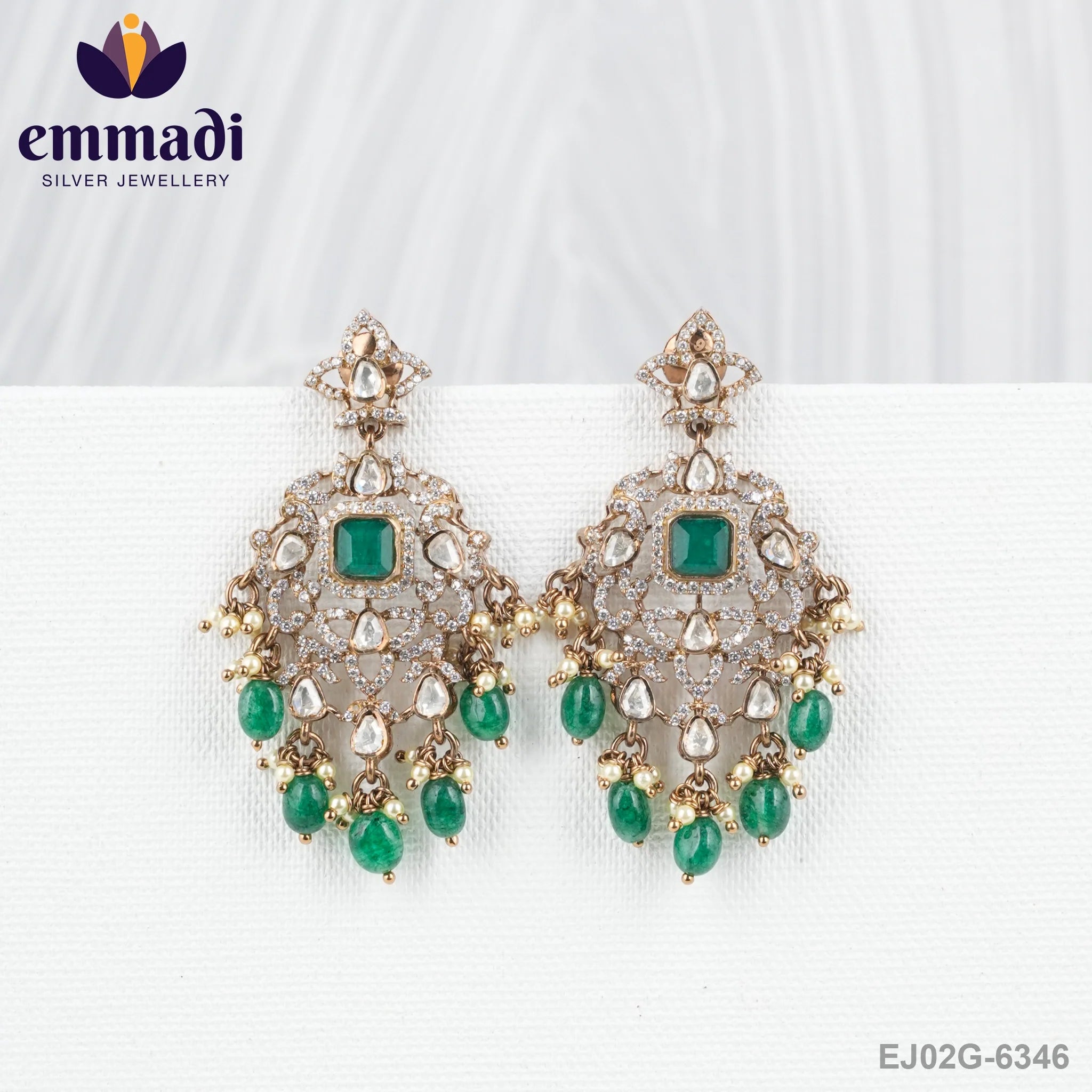 Indulge in the opulence of the Joshila Victorian Green Hangings. Crafted by Emmadi Silver Jeweller, India's Largest silver brand, these exquisite earrings exude sophistication and elegance. The mesmerising green hue adds a touch of regal charm to any ensemble, making them a must-have for those with a taste for luxury. Elevate your style with these timeless and captivating pieces that are sure to turn heads wherever you go.