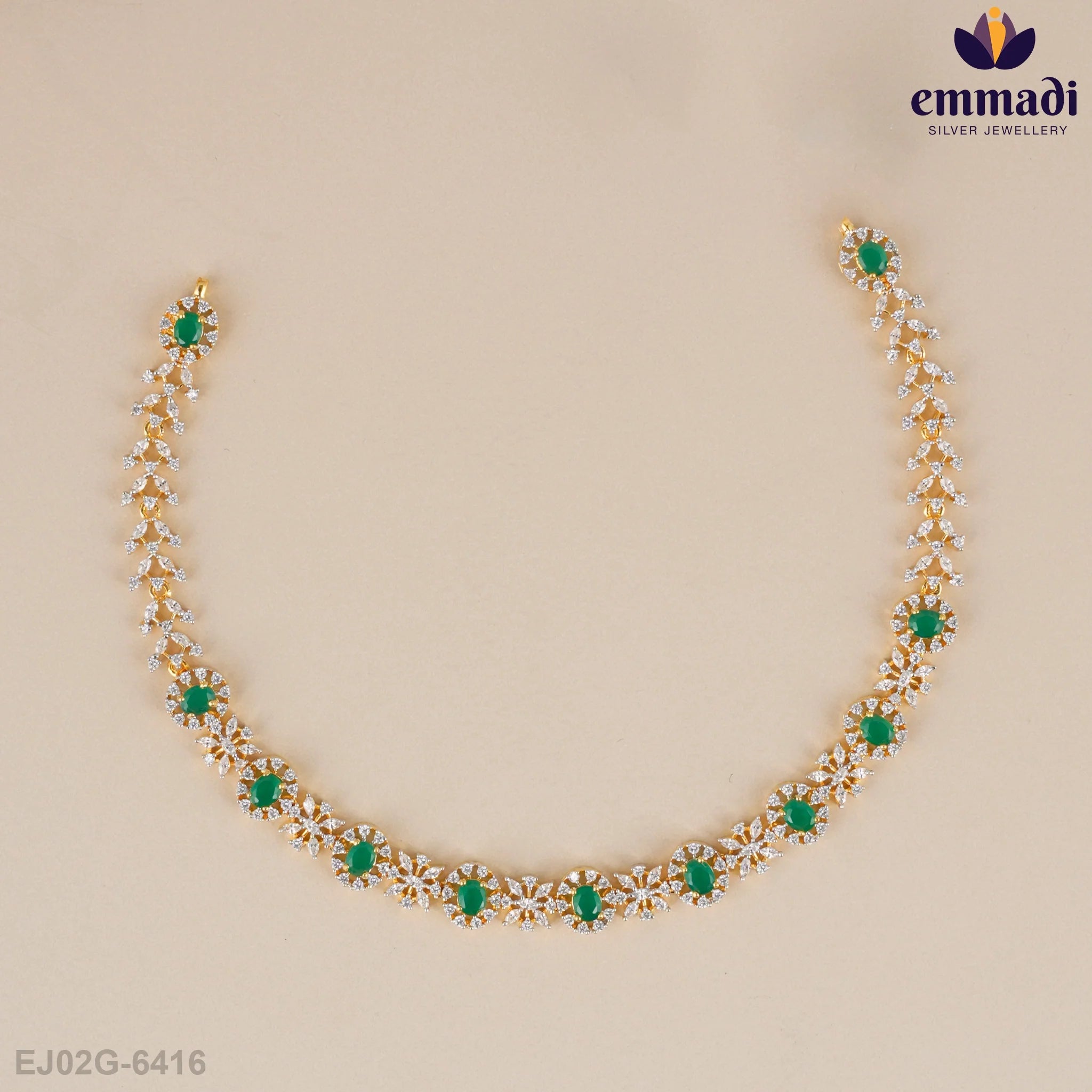 Indulge in the exquisite elegance of the Khusila CZ Green Necklace from Emmadi Silver Jeweller. This stunning piece effortlessly blends timeless sophistication with contemporary allure, making it a must-have for the discerning connoisseur. Let your style speak volumes as you adorn yourself with this exquisite necklace, designed to elevate any ensemble to new heights of glamour and luxury. Elevate your jewellery collection with the India's Largest silver brand.