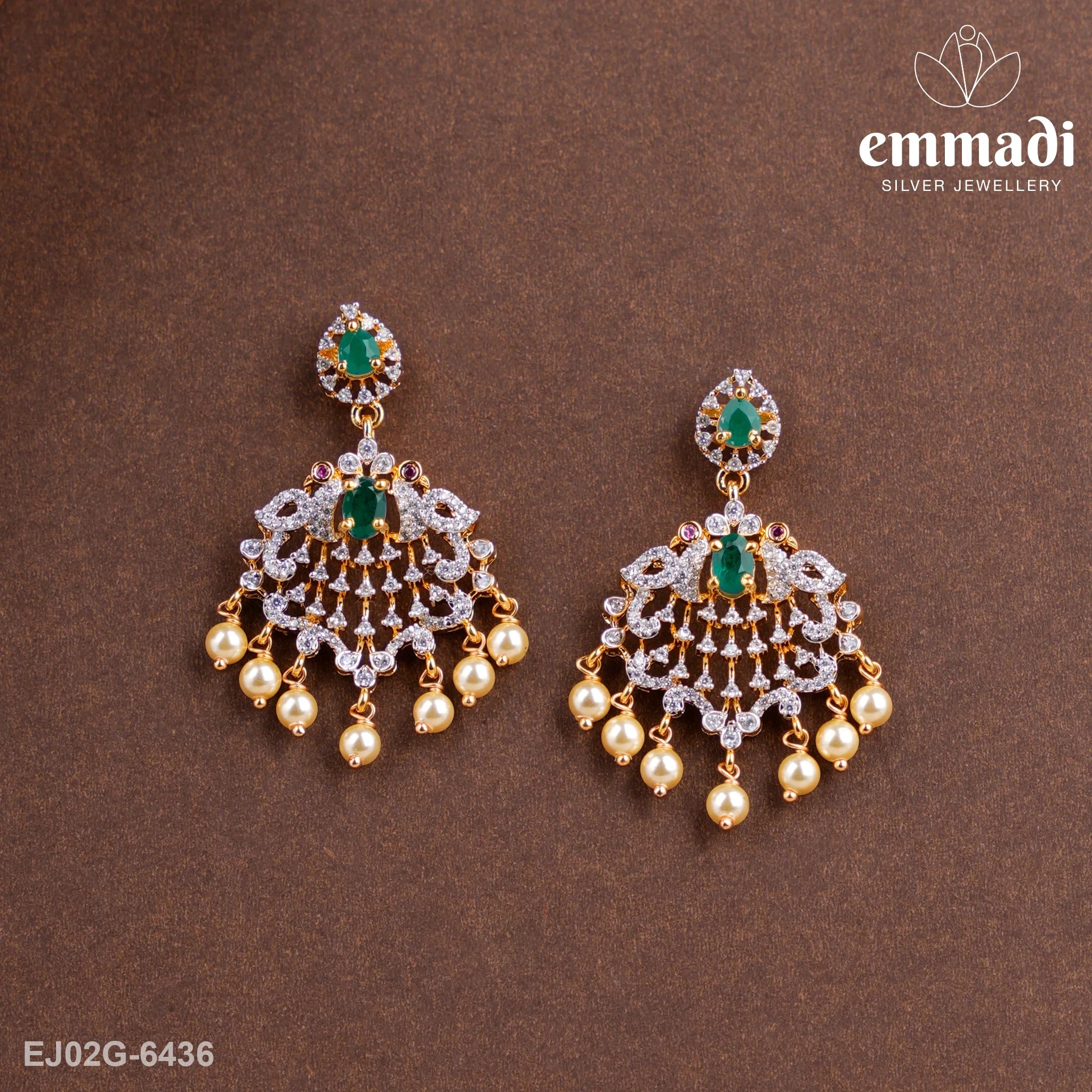 Indulge in the exquisite elegance of Labanya Premium Cz Green Hangings, brought to you by Emmadi Silver Jeweller ��� India's Largest silver brand. Glide into sophisticated luxury with these mesmerising earrings that exude charm and refinement effortlessly. Elevate your style with the captivating allure of these premium CZ green hangings and let your beauty shine through every occasion.