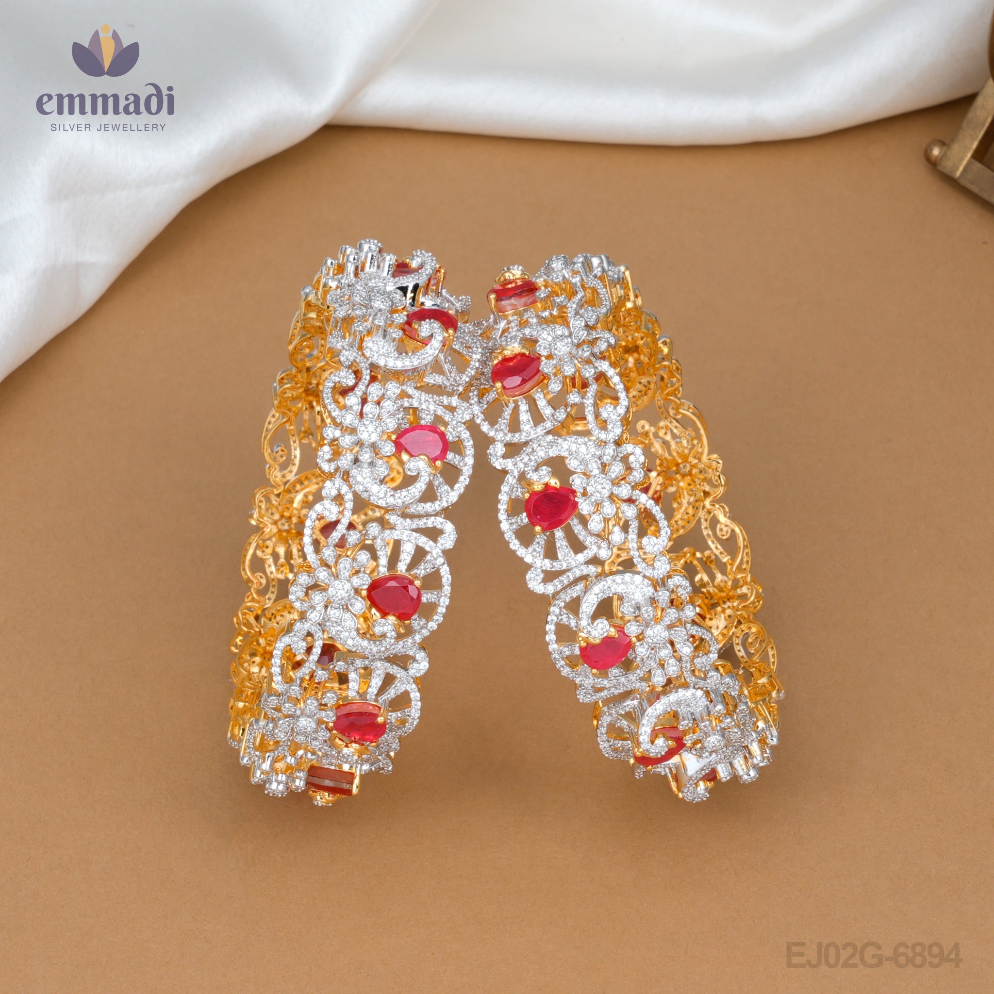These bangles are adorned with premium cubic zirconia (CZ) stones, meticulously set to enhance their brilliance and shine. The dazzling CZs reflect light beautifully, providing an eye-catching sparkle that mimics the look of real diamonds, making these bangles an ideal choice for both everyday wear and special occasions.