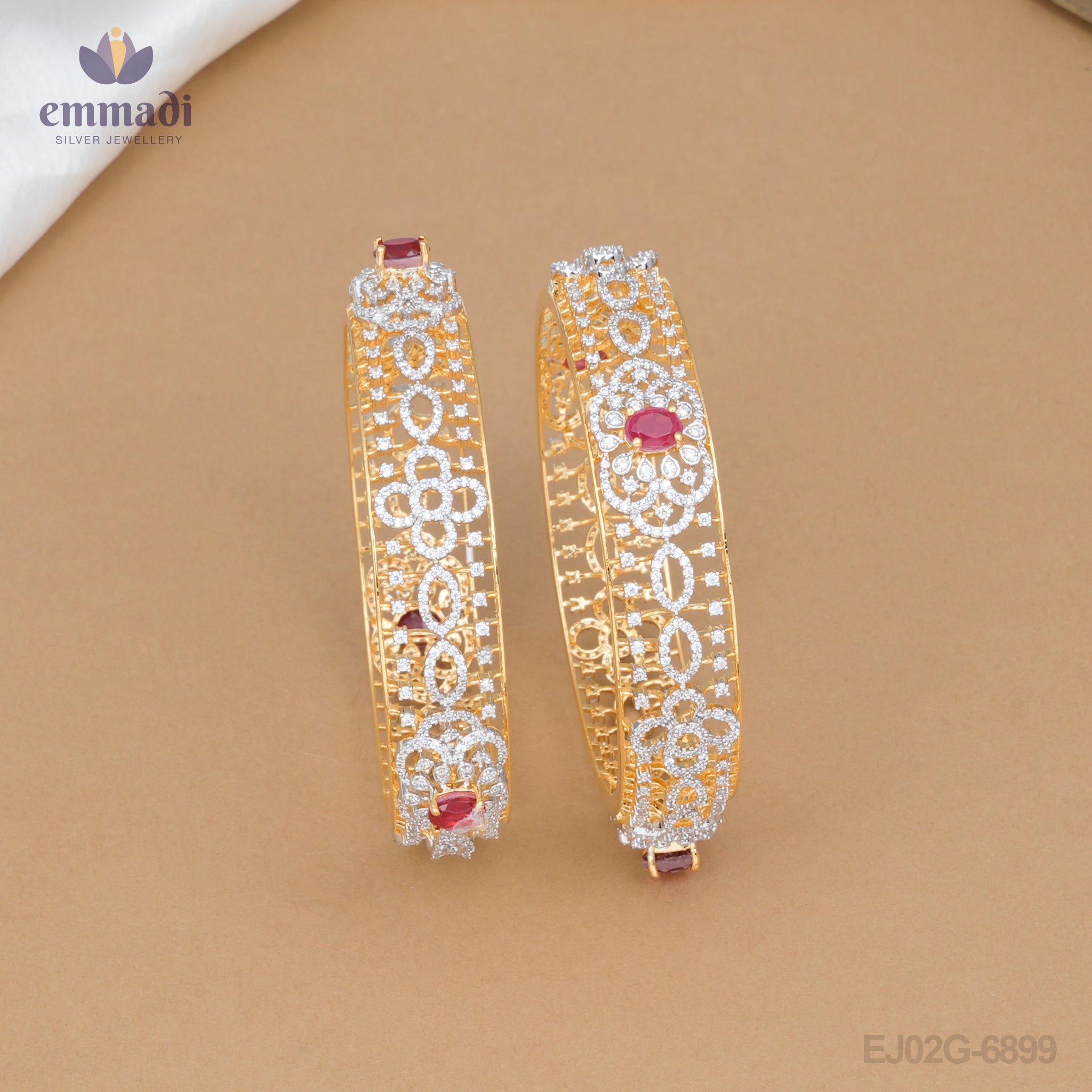 Elevate your jewelry collection with our exquisite Satya Radiant Red Premium CZ Bangles. Crafted for those who appreciate elegance and sophistication, these bangles are a stunning addition to any outfit, whether it's for a festive celebration or a casual gathering. Each bangle features a brilliant array of high-quality cubic zirconia (CZ) stones, meticulously set to create a dazzling effect that catches the eye from every angle.