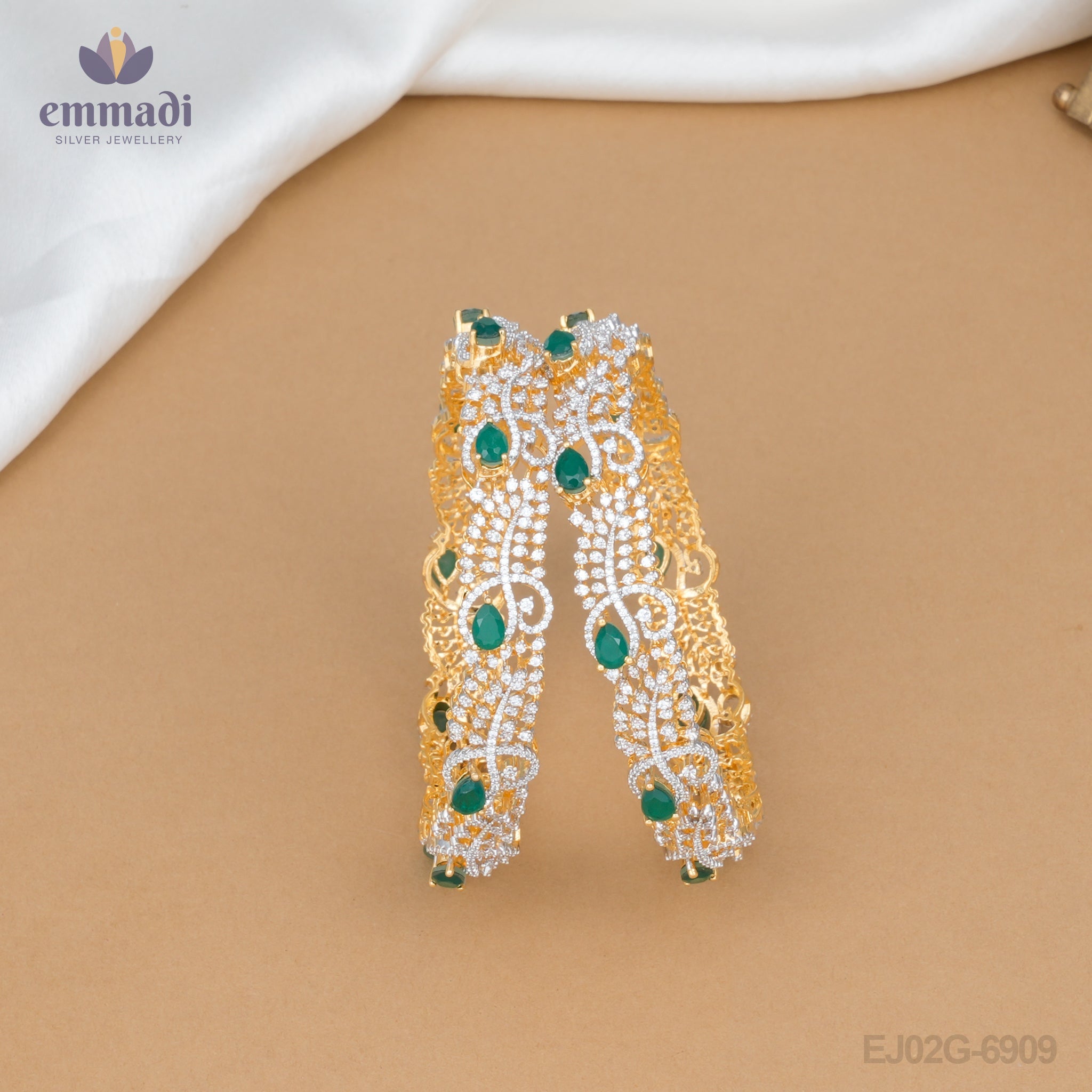Suman Bangles Premium CZ Green Elegance
