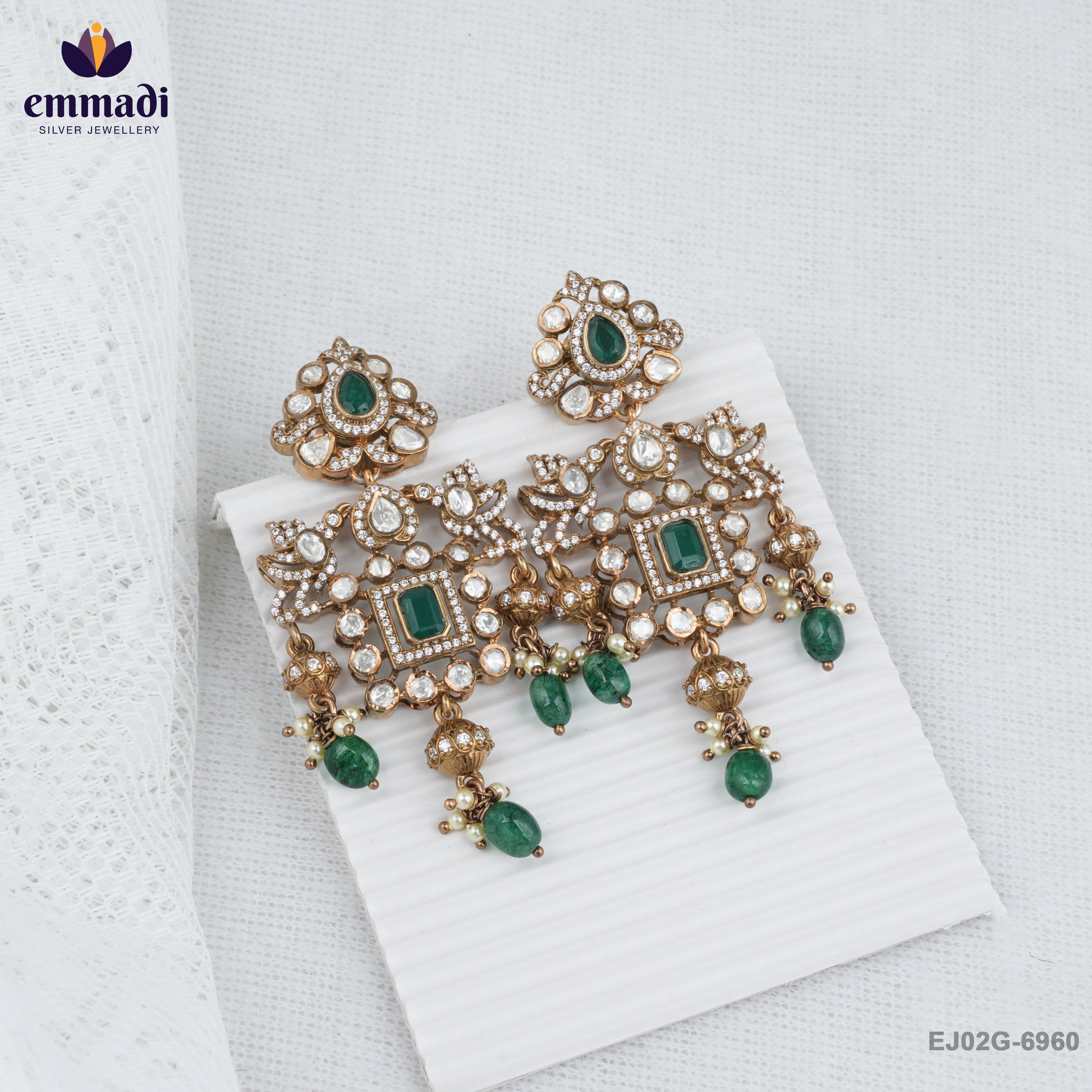 Discover the timeless elegance of Sonam's Exquisite Green Victorian Hangings, where traditional craftsmanship meets contemporary style. Each pair of hangings is meticulously designed to celebrate the rich cultural heritage of Victorian aesthetics while infusing a modern touch. Crafted from high-quality materials, these hangings showcase intricate detailing that reflects the artistry of bygone eras, making them a perfect addition to any jewelry collection.