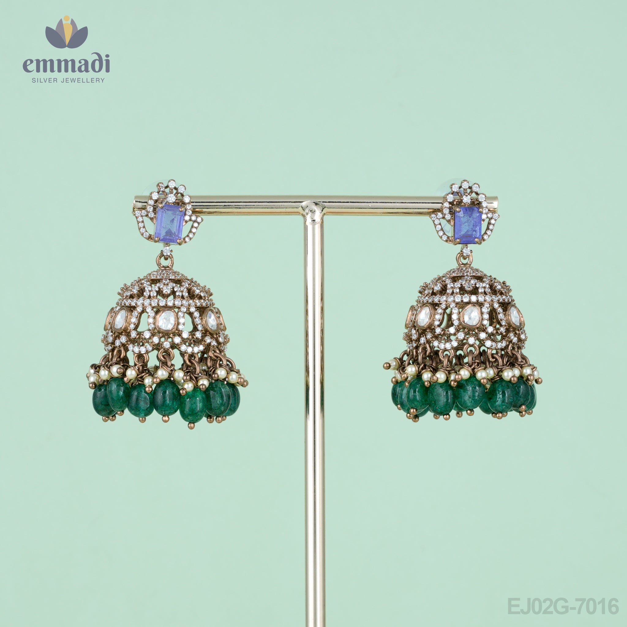 Himani proudly presents the exquisite Buttalu Victorian Jewellery collection, featuring the captivating elegance of blue hues. This meticulously crafted piece showcases a stunning Victorian design that marries tradition with contemporary aesthetics, making it a perfect addition to any jewellery enthusiast's collection.