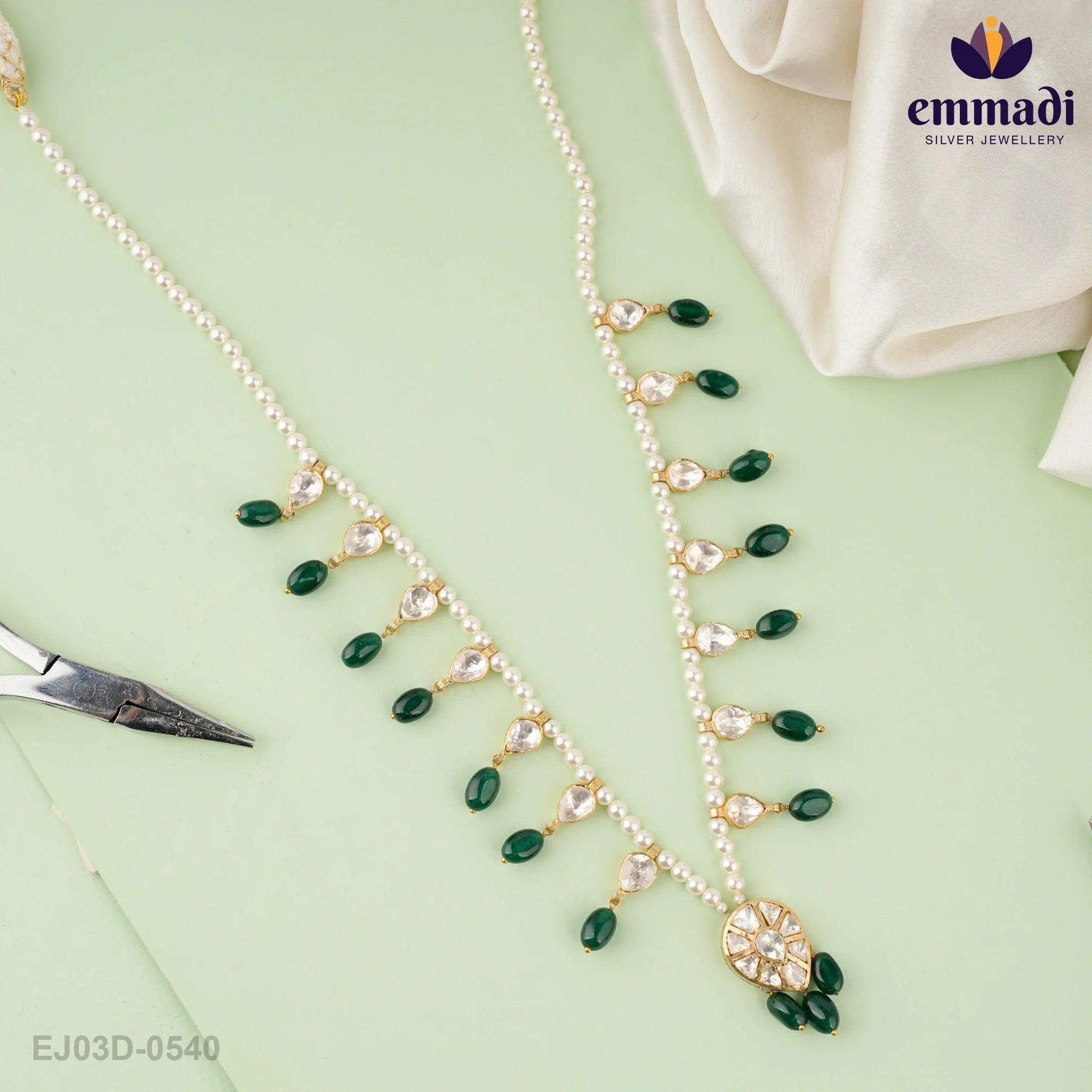 Indulge in the epitome of sophistication with the Manojna Moissanite White Necklace, a dazzling creation by Emmadi Silver Jeweller, India's Largest silver brand. Elevate your style with this exquisite piece that exudes elegance and glamour. Perfect for adding a touch of luxury to any outfit, this necklace is a timeless accessory that will make you shine bright at any occasion. Adorn yourself with the beauty of Moissanite and experience the allure of true refined style.