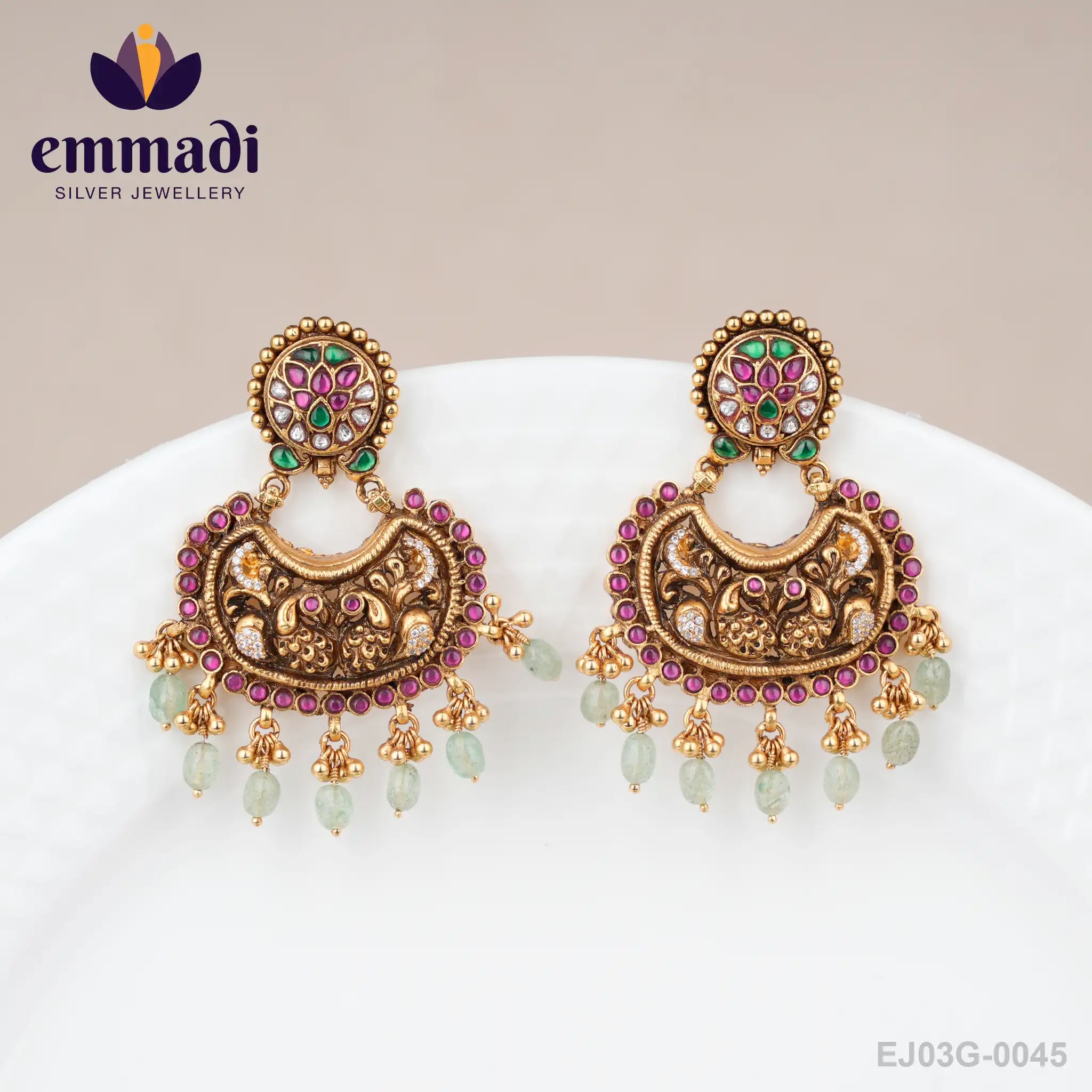 Indulge in opulent elegance with the Monisha Kundan Nakshi Multi Hangings from Emmadi Silver Jeweller, India's Largest silver brand. Dripping with sophistication and style, these multi hangings are the epitome of luxury. Shimmering with intricate Kundan details, they are sure to add a touch of glamour to any outfit. Elevate your look to new heights with these exquisite statement pieces.
