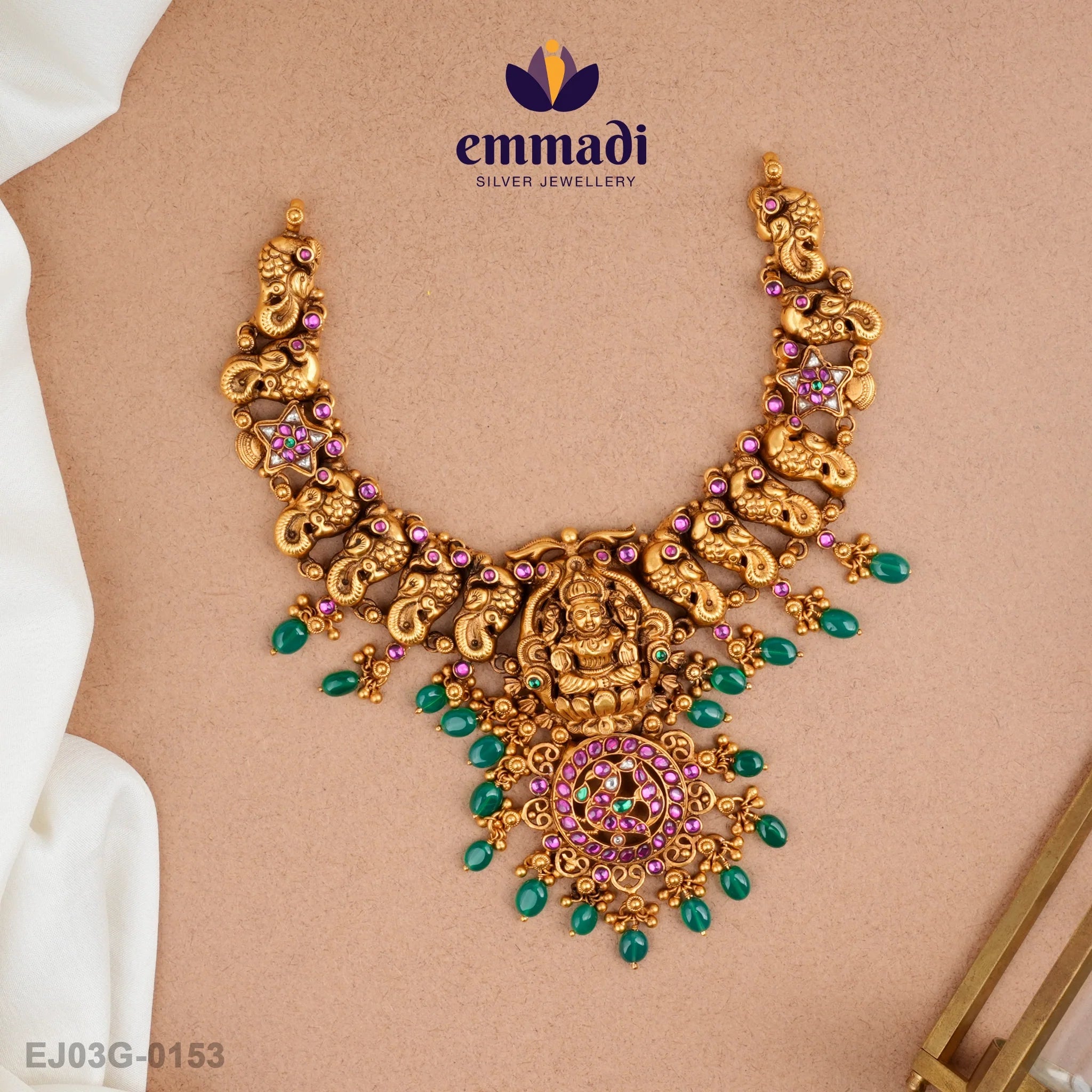 Indulge in opulence with the Napt?ka Kundan Nakshi Multi Necklace by Emmadi Silver Jeweller, India's Largest silver brand. Elevate your ensemble with this exquisite piece that exudes elegance and sophistication. Make a statement and dazzle with the intricate craftsmanship and timeless beauty of this luxurious necklace. It's the perfect accessory to add a touch of glamour to any outfit, whether for a special occasion or simply to elevate your everyday look. Experience the allure of luxury with this stunning Kundan Nakshi Multi Necklace.