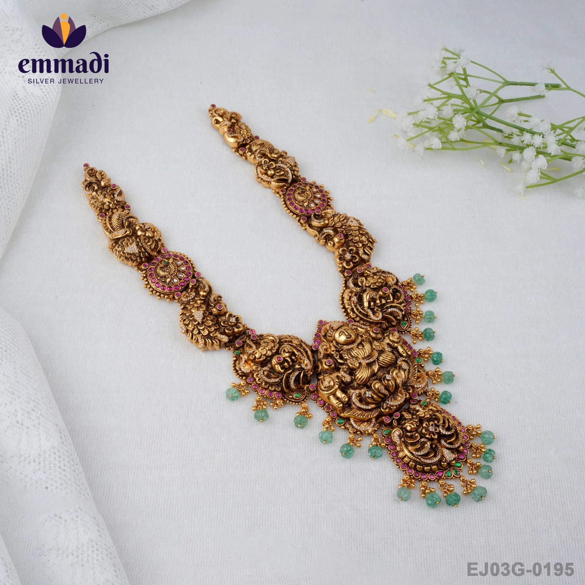Indulge in the exquisite elegance of the Nikhita Kundan Nakshi Multi Long Necklace, a masterpiece from Emmadi Silver Jeweller, India's Largest silver brand. Adorn yourself with this opulent piece, intricately designed to exude luxury and sophistication. Elevate your ensemble with the timeless charm of this stunning necklace, a true reflection of grace and style. Immerse yourself in the allure of fine craftsmanship and elevate your look to unparalleled heights.