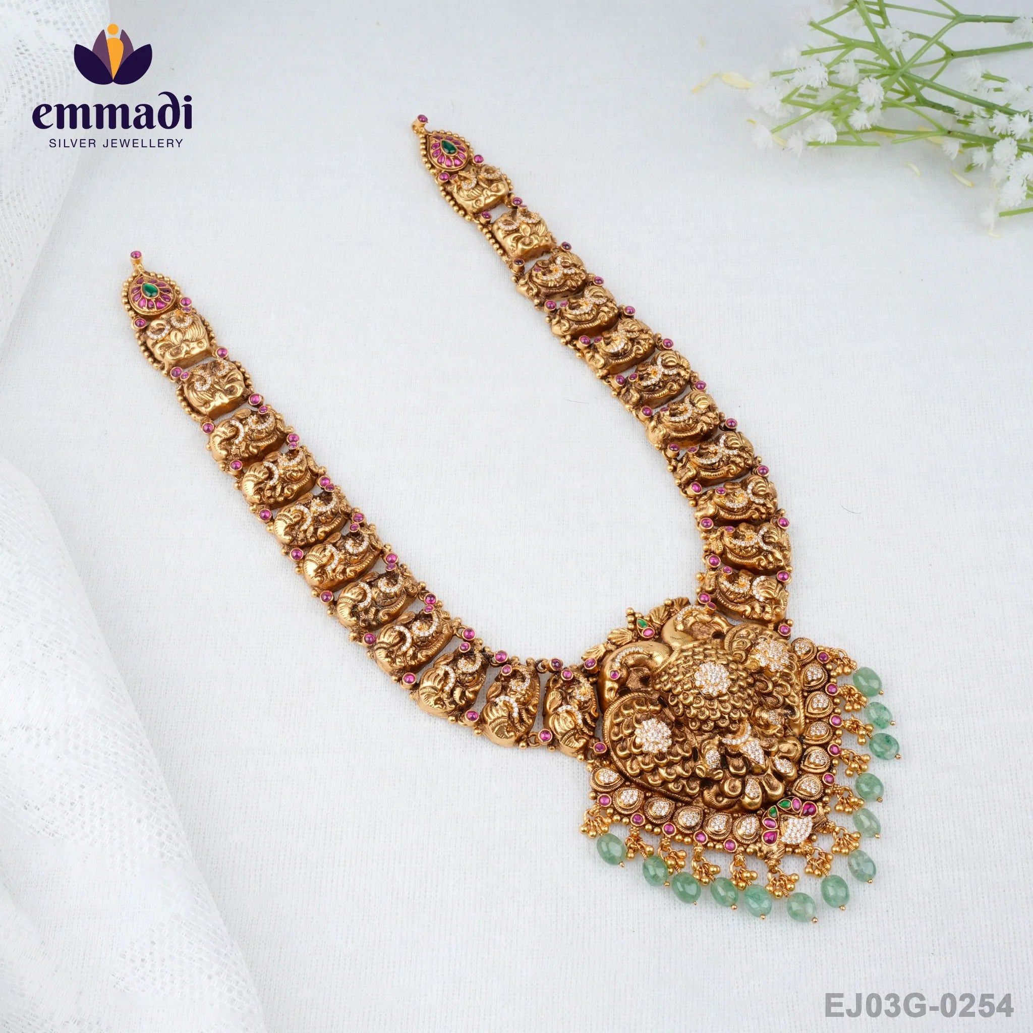 Indulge in the opulent beauty of the Niryama Kundan Nakshi Multi Long Necklace, a true masterpiece by Emmadi Silver Jeweller, India's Largest silver brand. ���� With intricate details and stunning craftsmanship, this necklace exudes elegance and sophistication, making it the perfect statement piece for any occasion. Adorn yourself with luxury and grace, and let the timeless allure of this necklace elevate your style to new heights.