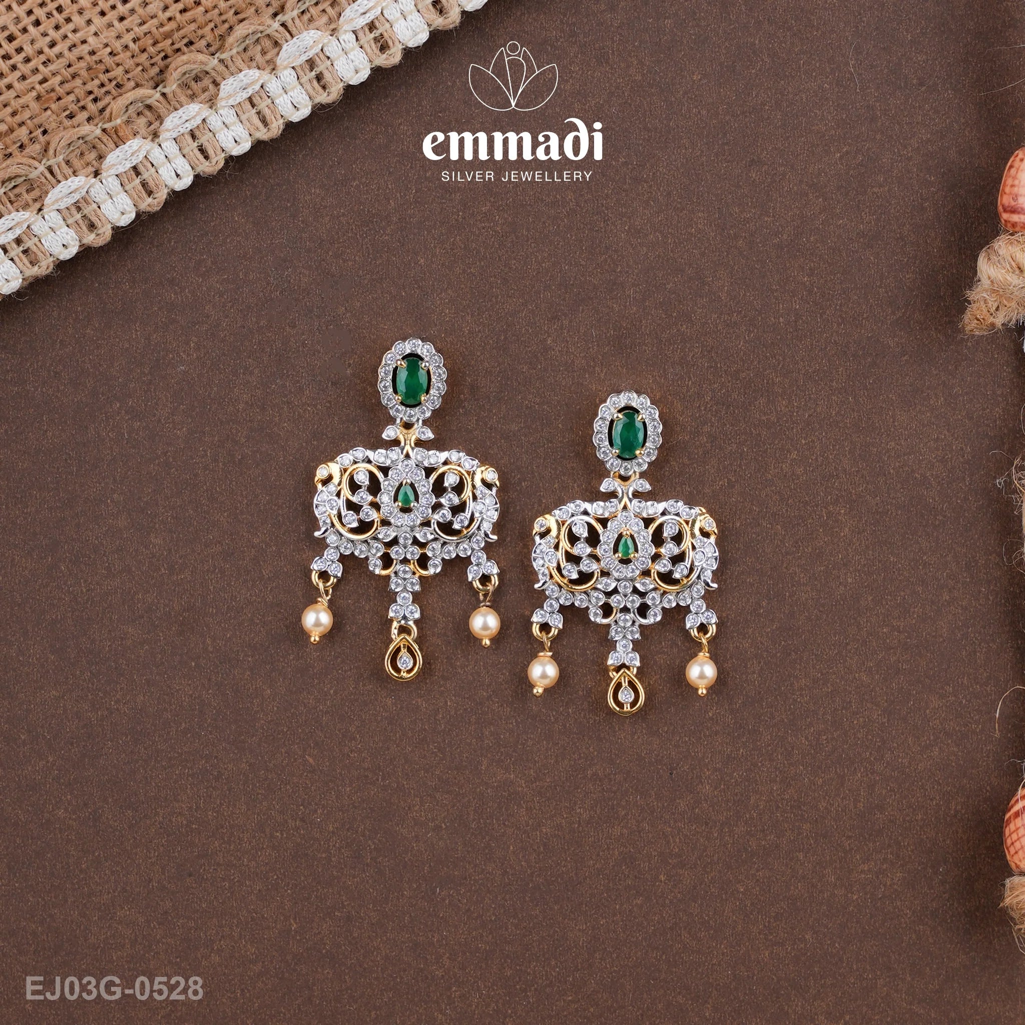 Indulge in the elegance and opulence of Pradipa Premium Cz Green Hangings by Emmadi Silver Jeweller, India's Largest silver brand. Elevate your style with these exquisite earrings adorned with dazzling green cubic zirconia stones, adding a touch of sophistication to any ensemble. Make a statement with luxury and grace every time you wear these radiant hangings. Experience the allure of timeless beauty with Pradipa Premium Cz Green Hangings.