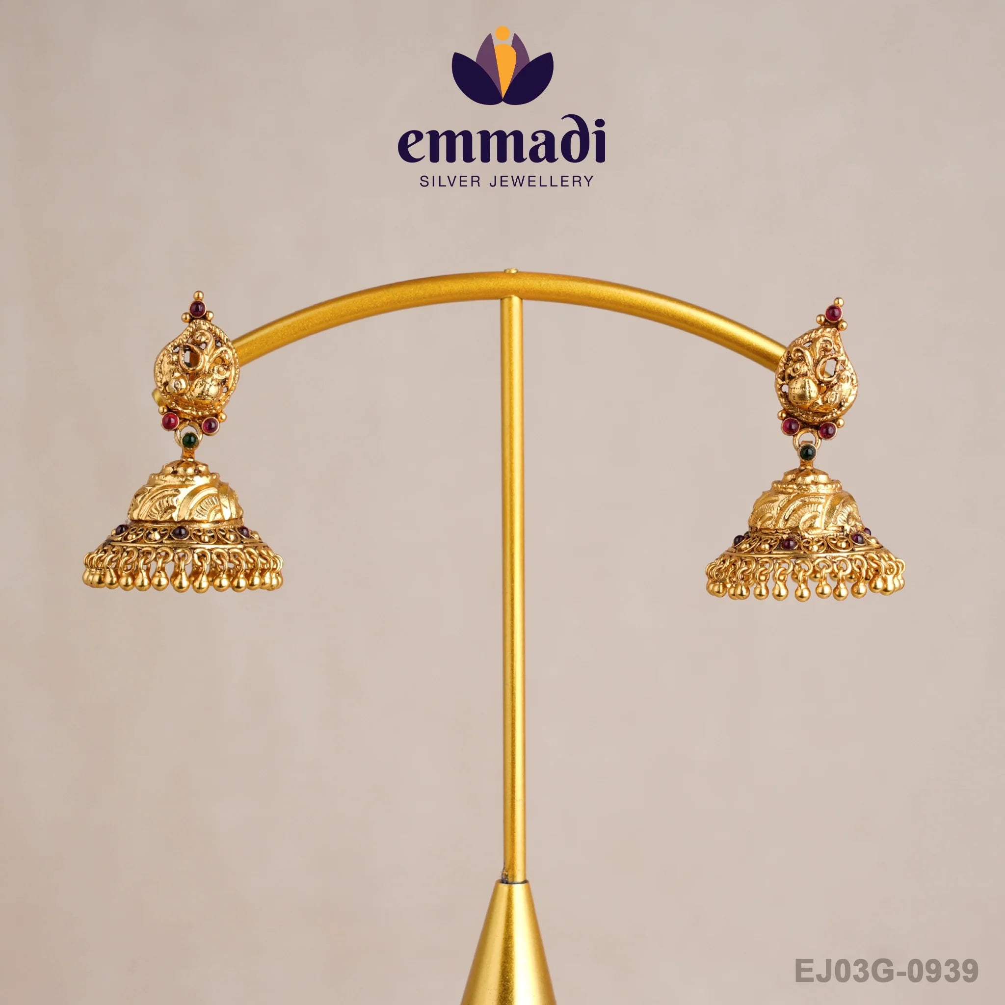 Introducing the exquisite Sakunta Nakshi Multi Buttalu, a dazzling masterpiece from Emmadi Silver Jeweller, India's Largest silver brand. Elevate your style with these intricately designed earrings, crafted to perfection. Let your elegance shine through with these luxurious statement pieces that exude sophistication and charm. Perfect for any occasion, these stunning Sakunta Nakshi Multi Buttalu are sure to make heads turn and leave a lasting impression wherever you go. Indulge in the luxury of timeless beauty with these exquisite earrings.