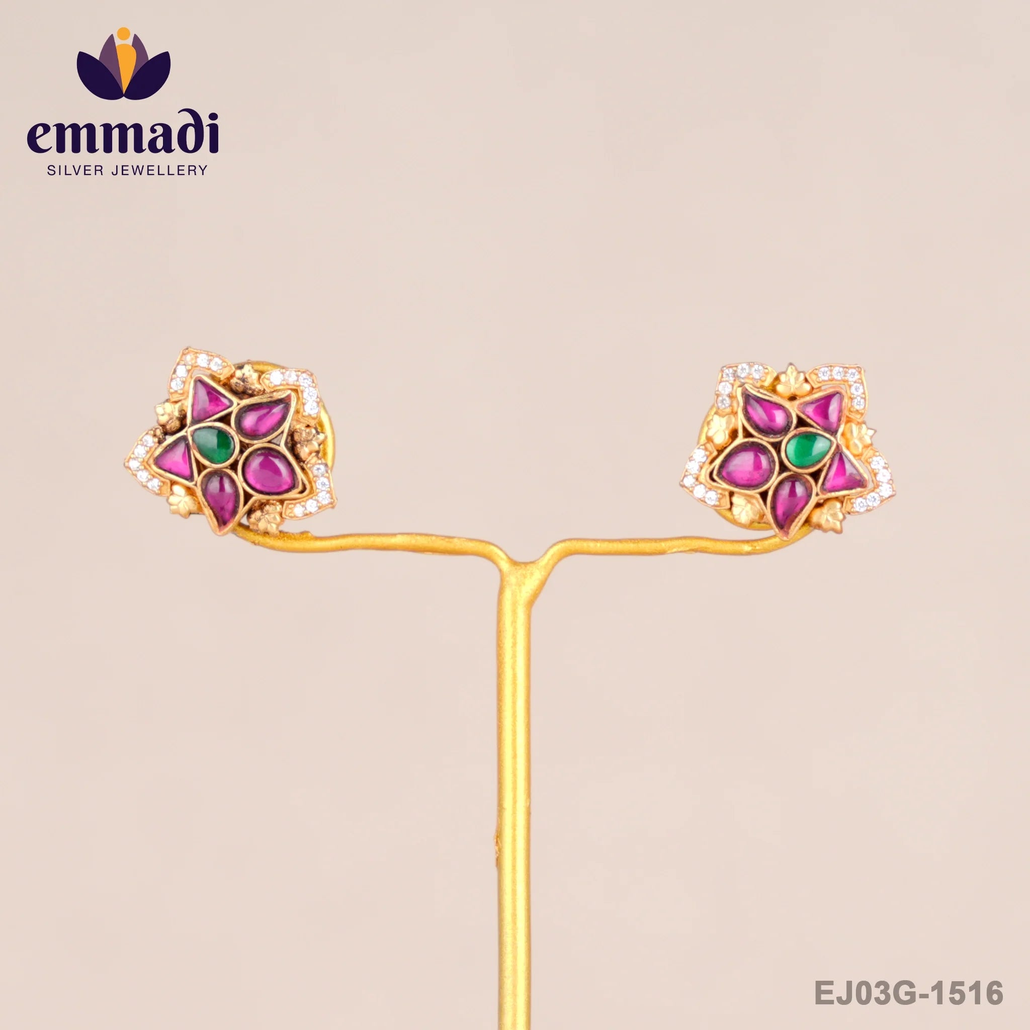 Indulge in the opulence of Saparna Kundan Multi Studs by Emmadi Silver Jeweller, India's Largest silver brand. Elevate your style to new heights with these exquisitely crafted studs that exude sophistication and luxury. Adorn yourself with the timeless elegance of Kundan detailing, radiating a regal allure that is sure to capture attention. Embrace the beauty of tradition with a modern twist, making a statement that is both classic and contemporary. Immerse yourself in the allure of these stunning multi studs, a true symbol of elegance and refinement.