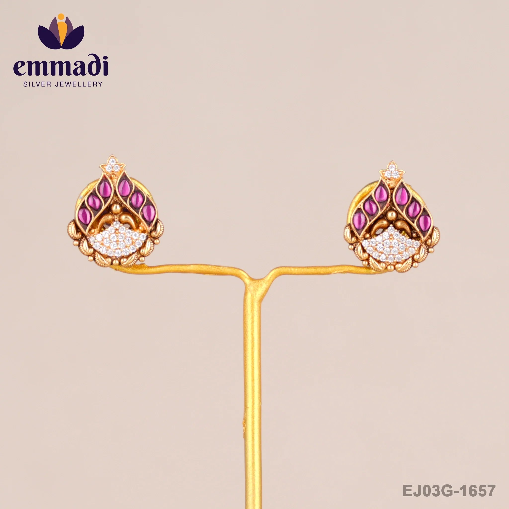 Indulge in the exquisite elegance of Emmadi Silver Jeweller, India's Largest silver brand, with the Shalaka Kundan Pink Studs. Crafted to perfection, these studs exude sophistication and charm, perfect for adding a touch of luxury to any outfit. Let your style radiate with these captivating pink studs, designed to elevate your look effortlessly. Enhance your ensemble with a touch of glamour and grace with these stunning pieces from Emmadi Silver Jeweller.