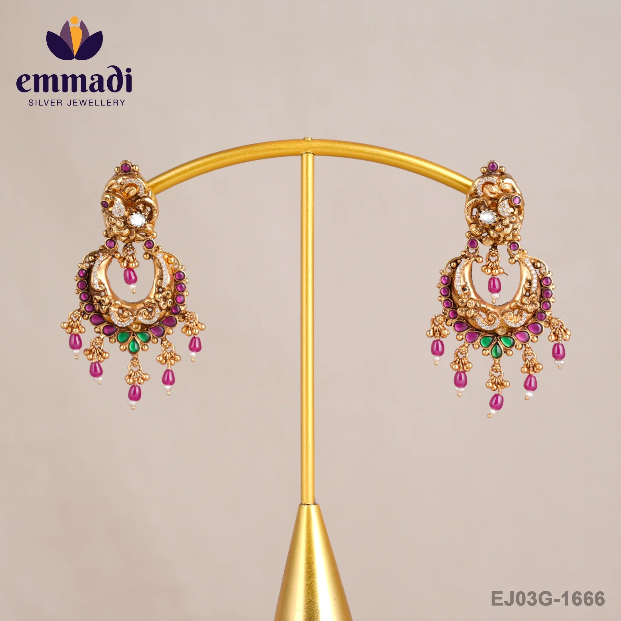 Introducing the Sharada Kundan Nakshi Multi Hangings, a pinnacle of sophistication and elegance by Emmadi Silver Jeweller, India's largest silver brand. Dripping with opulence and crafted with exquisite detail, these hangings are a testament to luxury and style. Adorn yourself with these radiant pieces that effortlessly elevate any outfit, making you the epitome of charm and grace. Revel in the timeless beauty and unmatched craftsmanship of the Sharada Kundan Nakshi Multi Hangings - a treasure to behold, a symbol of refined taste.