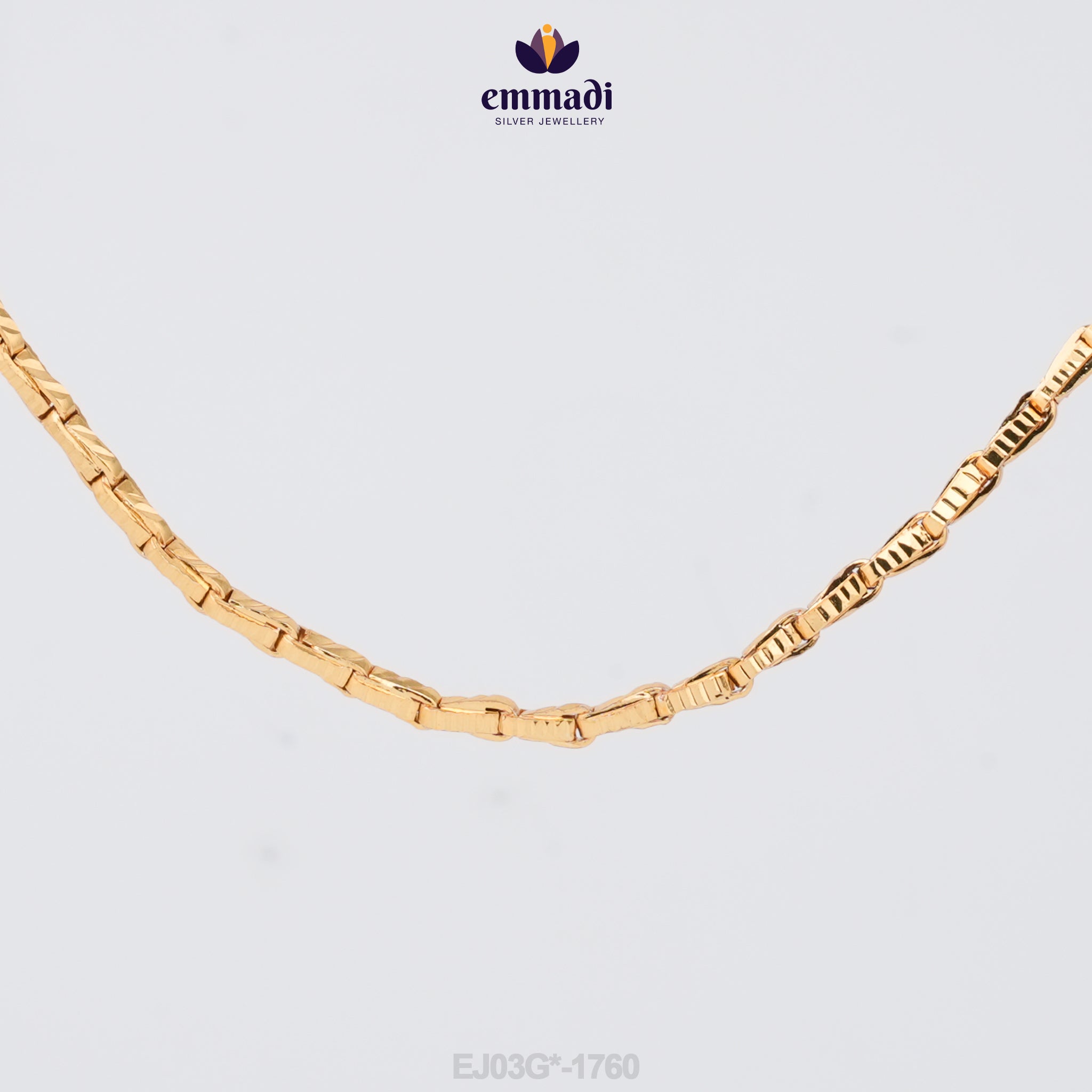 Crafted from high-quality materials, the Jayashree chain showcases a warm gold hue that enhances its luxurious appeal. Each link is meticulously formed, ensuring durability while maintaining an elegant aesthetic. The length of the chain is thoughtfully designed to rest gracefully around your neck, making it perfect for both casual outings and formal occasions. The secure clasp allows for easy fastening, giving you peace of mind while you wear this beautiful piece.