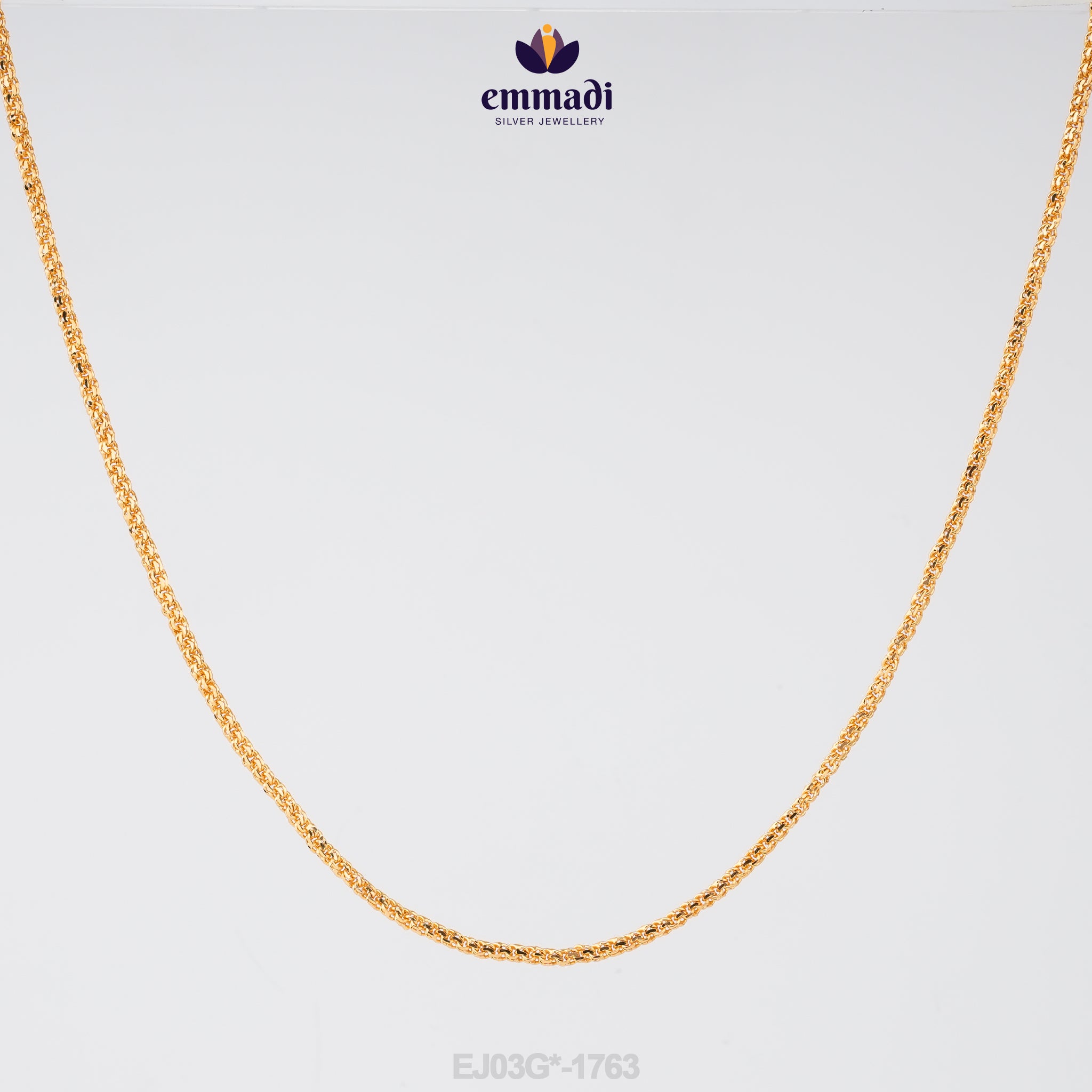 Introducing our exquisite Kavya Elegant Gold Fancy Chain, a stunning addition to any jewelry collection. Designed for those who appreciate both beauty and craftsmanship, this chain is a perfect blend of style and sophistication. Crafted from high-quality materials, the chain features a rich gold hue that radiates elegance and captures the eye.