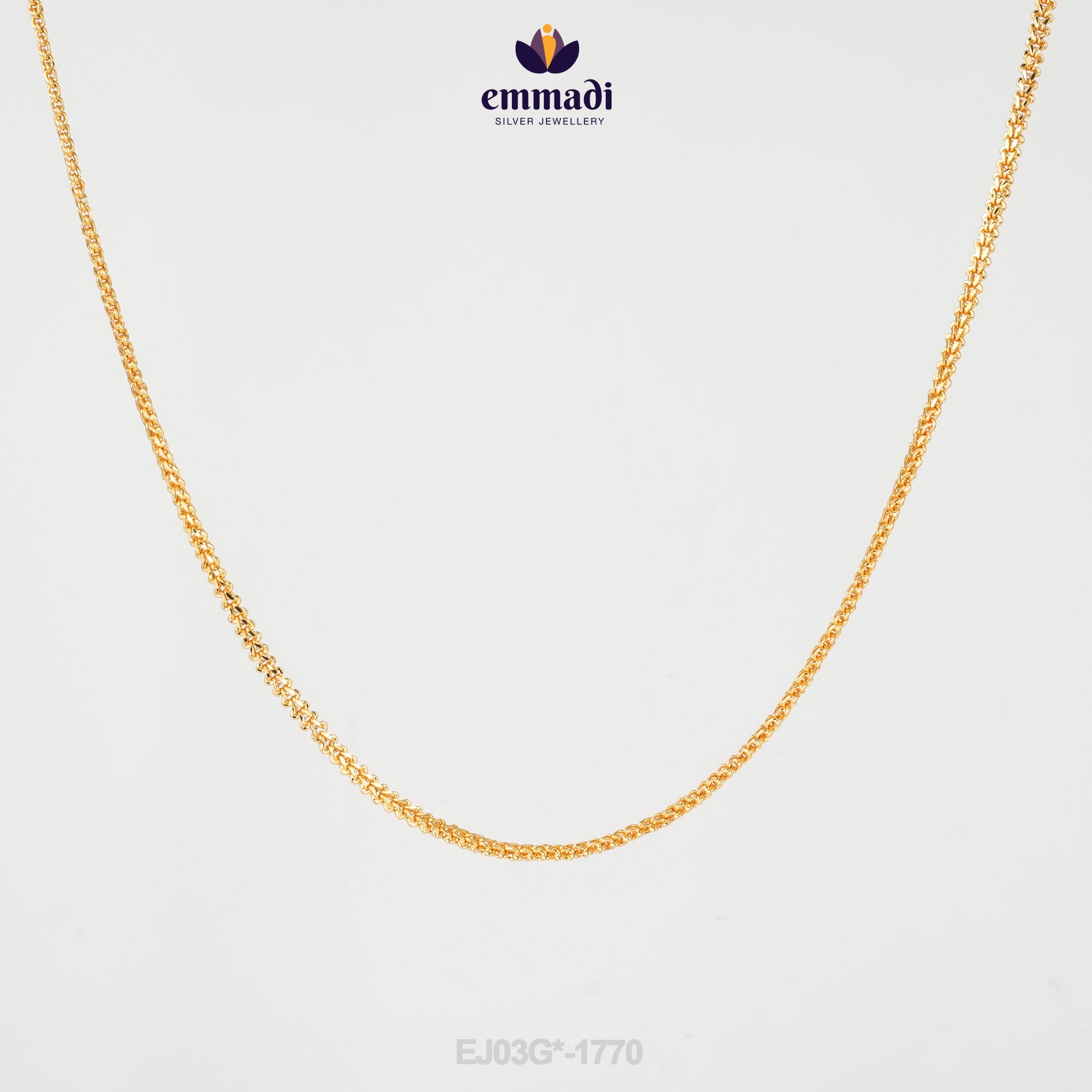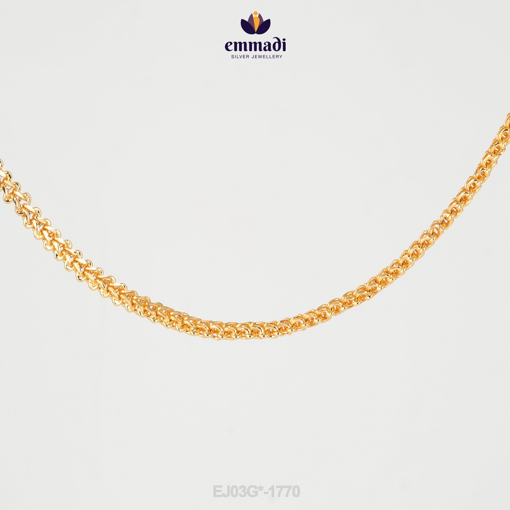 The chain features an intricate design that showcases an array of delicate links, creating a visually captivating pattern. Its lustrous gold colour radiates warmth and elegance, making it a versatile accessory that complements a wide range of outfits. Whether you're pairing it with a simple blouse or a lavish evening gown, the Ashita chain elevates your look with grace.