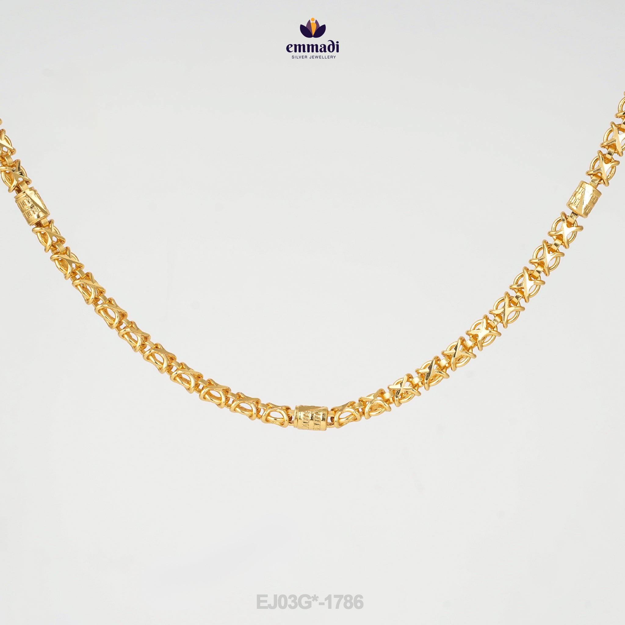 Discover the captivating allure of the Dhanya Elegant Gold Fancy Chain, a timeless piece designed for those who appreciate understated luxury. Crafted with precision and care, this exquisite chain is perfect for any occasion, whether it's a casual outing or a glamorous event. Made from high-quality materials, it boasts a stunning gold finish that complements any outfit, adding a touch of sophistication to your ensemble.