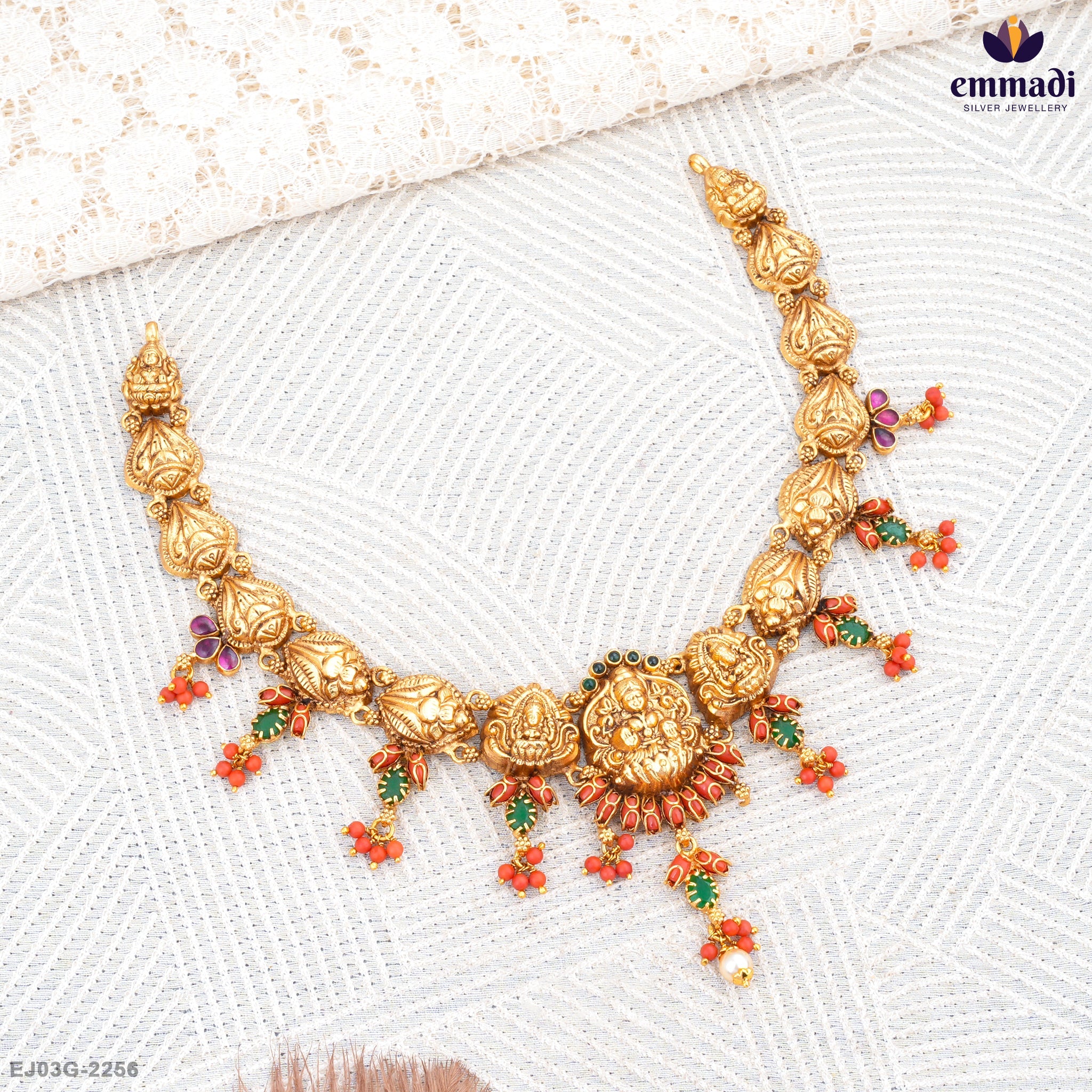Discover the enchanting beauty of our Pagadam Collection with the NECKLACE NAKSHI, featuring a stunning green color that's sure to captivate. This exceptional piece showcases intricate nakshi craftsmanship, a revered technique that highlights artistry and cultural heritage. Each necklace is meticulously designed, reflecting elegance and sophistication, making it a perfect addition to any jewelry collection.